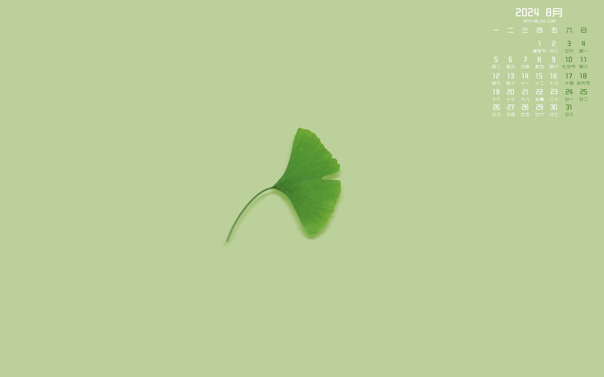 蓝色水面2024年8月日历桌面壁纸高清风景