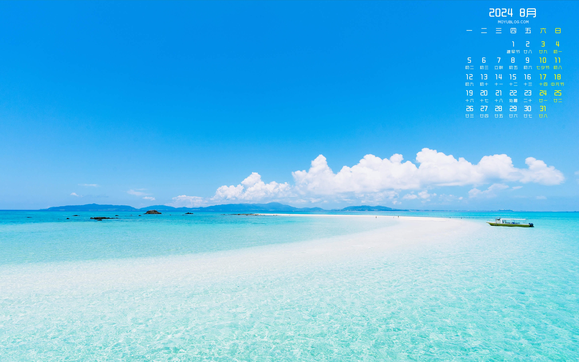 白茅草2024年8月日历免费电脑壁纸下载
