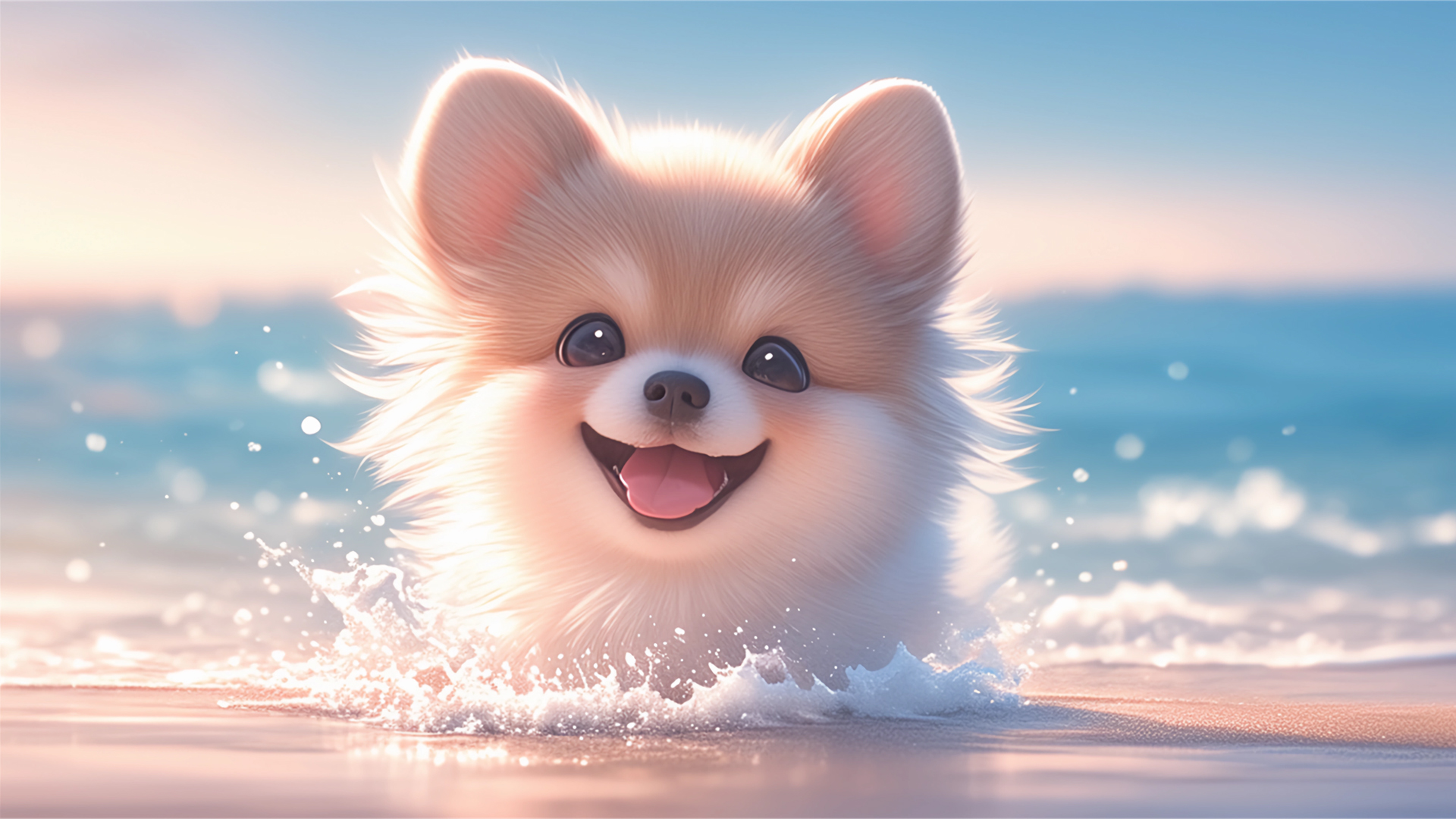 可爱小狗海边主题免费电脑壁纸下载