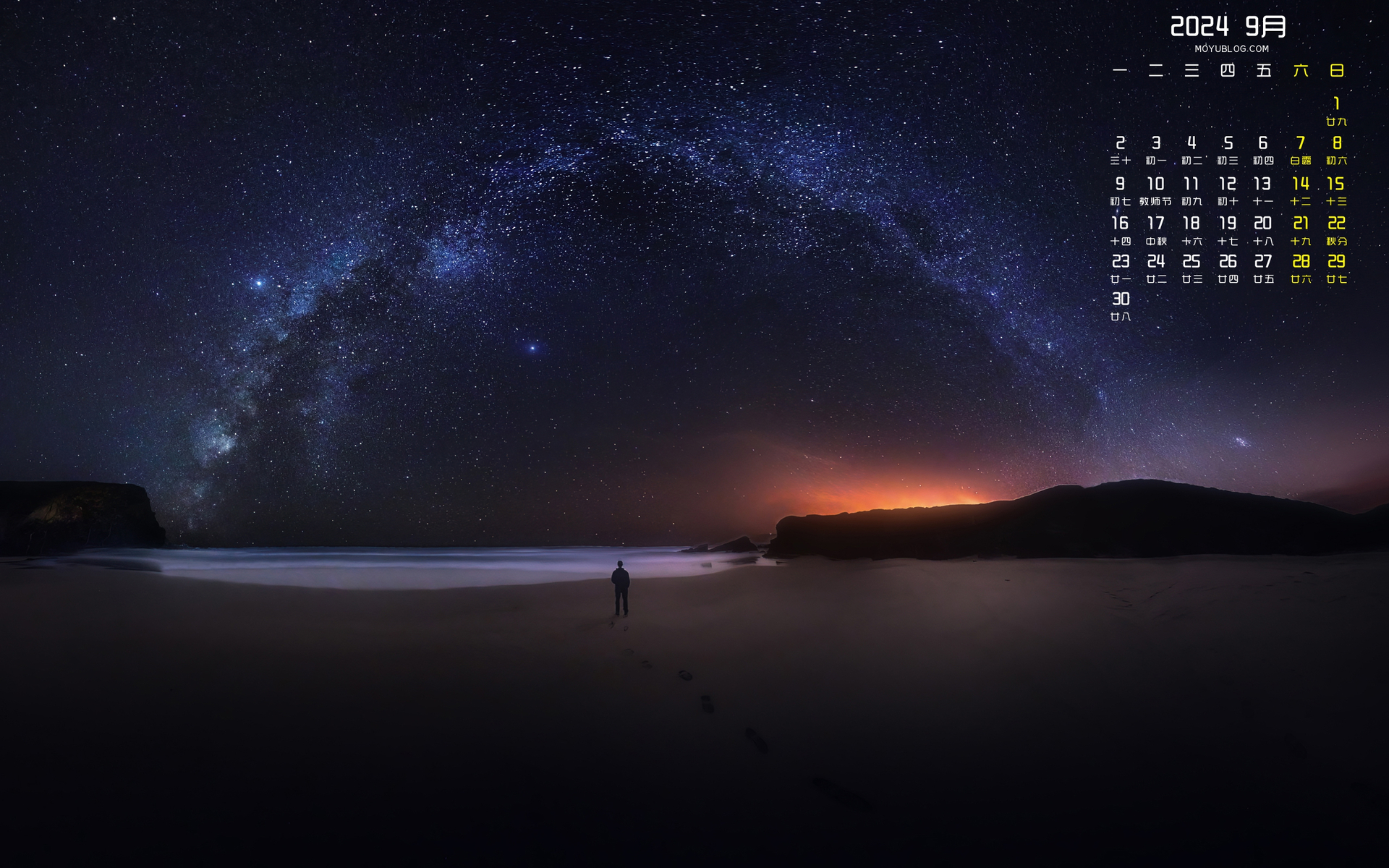 一个人沙漠风景2025年8月电脑桌面日历壁纸高清
