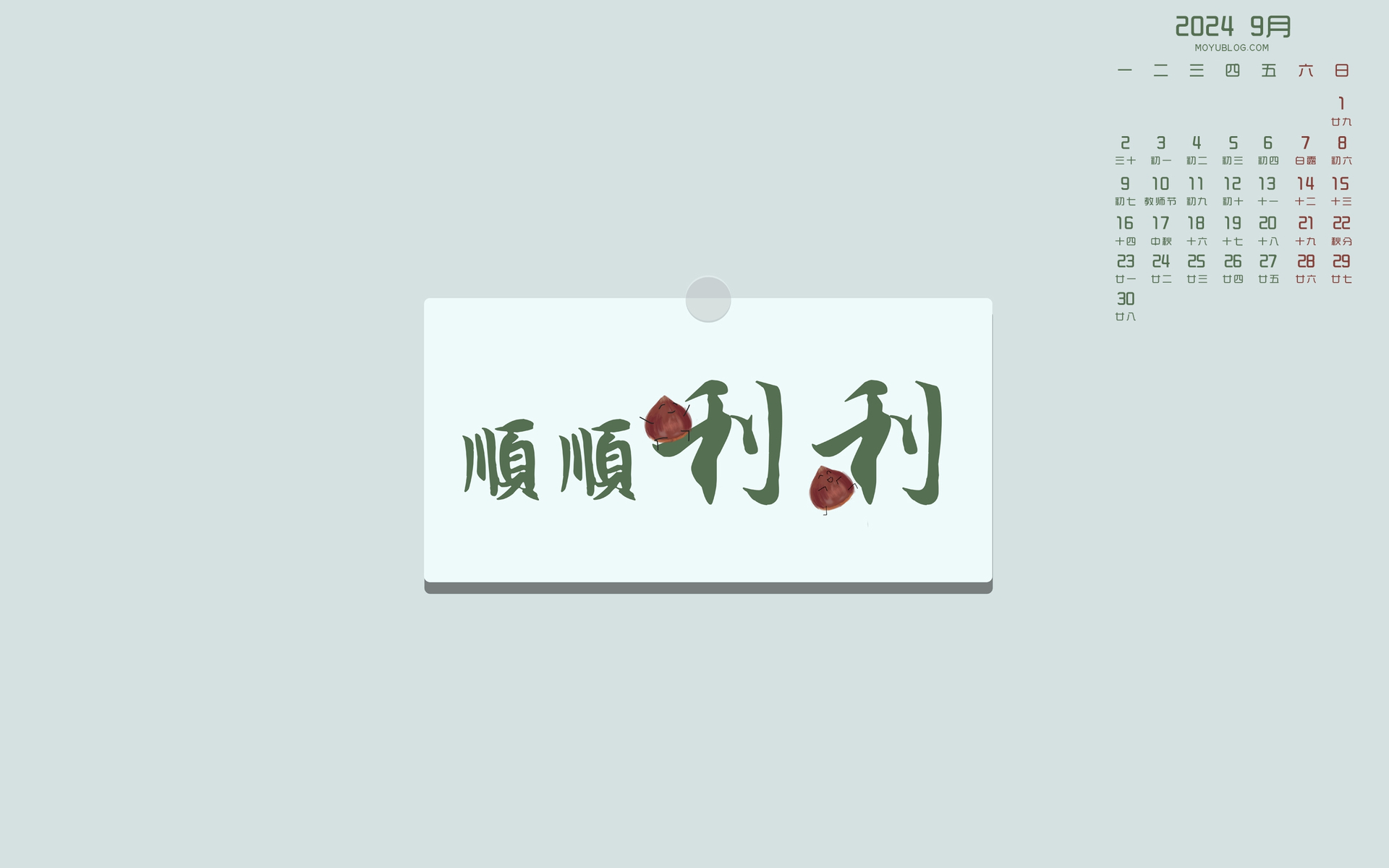 绿叶背景2024年9月日历桌面壁纸护眼