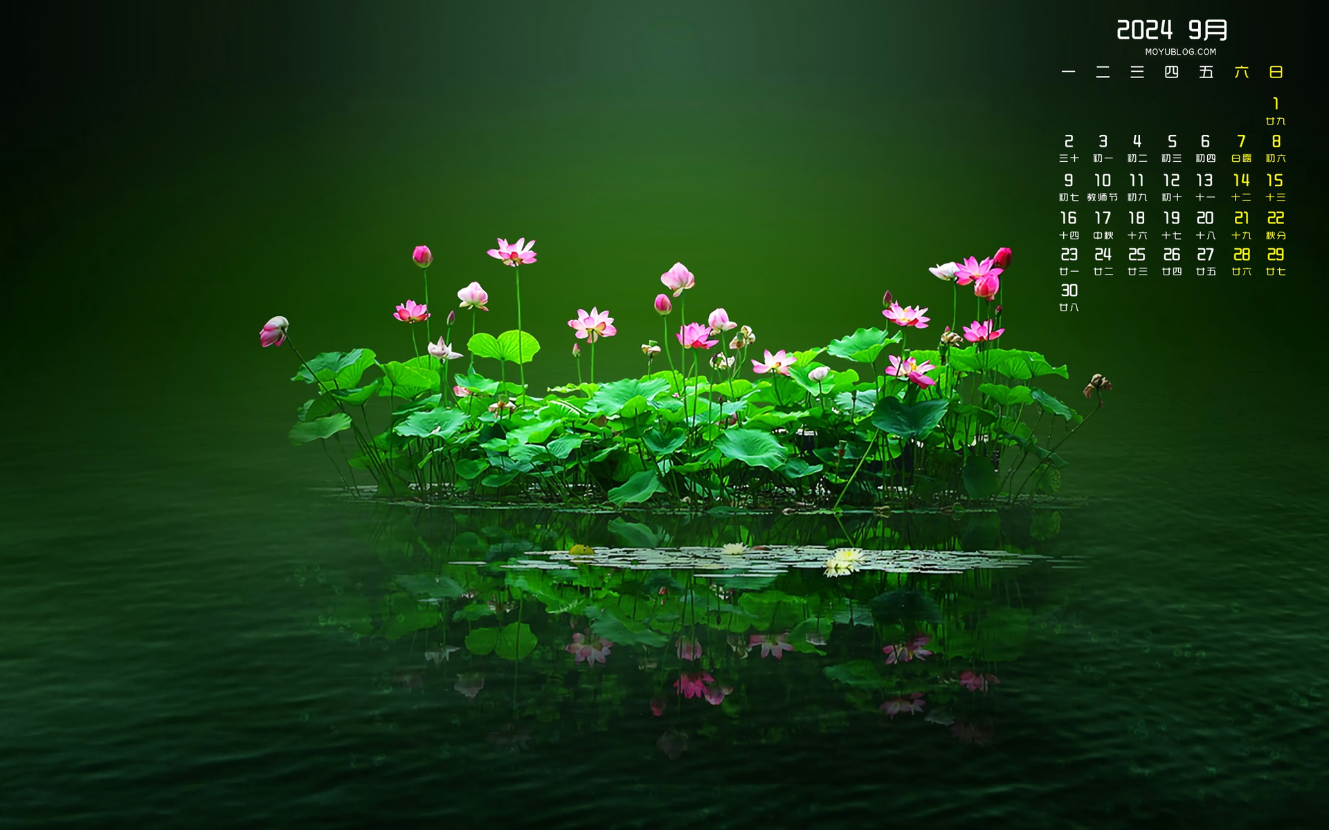 2025年10月湖水风景电脑桌面日历壁纸免费下载