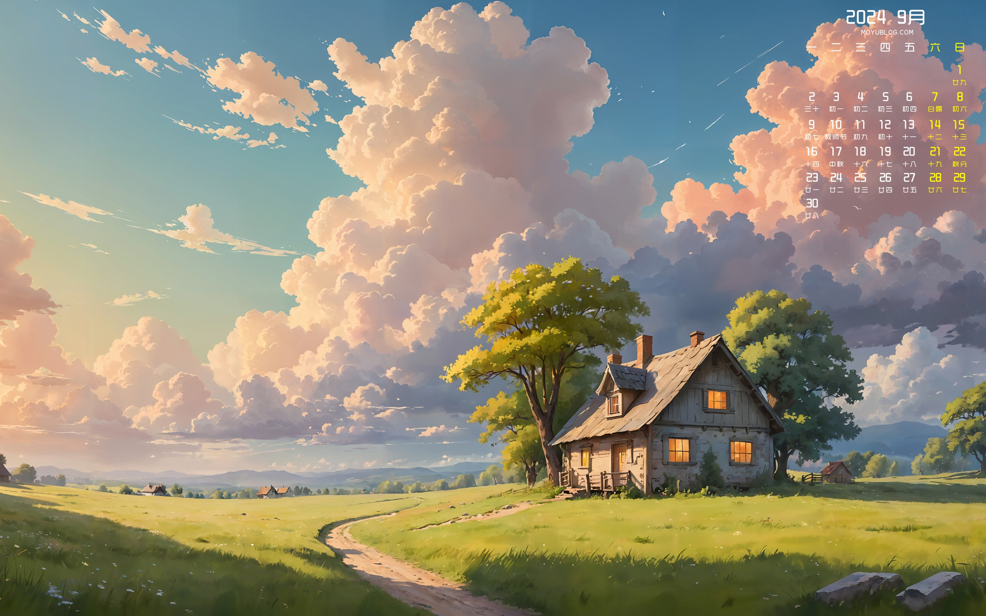 2025年9月上上签墨鱼部落格原创高清全屏桌面日历免费电脑壁纸下载
