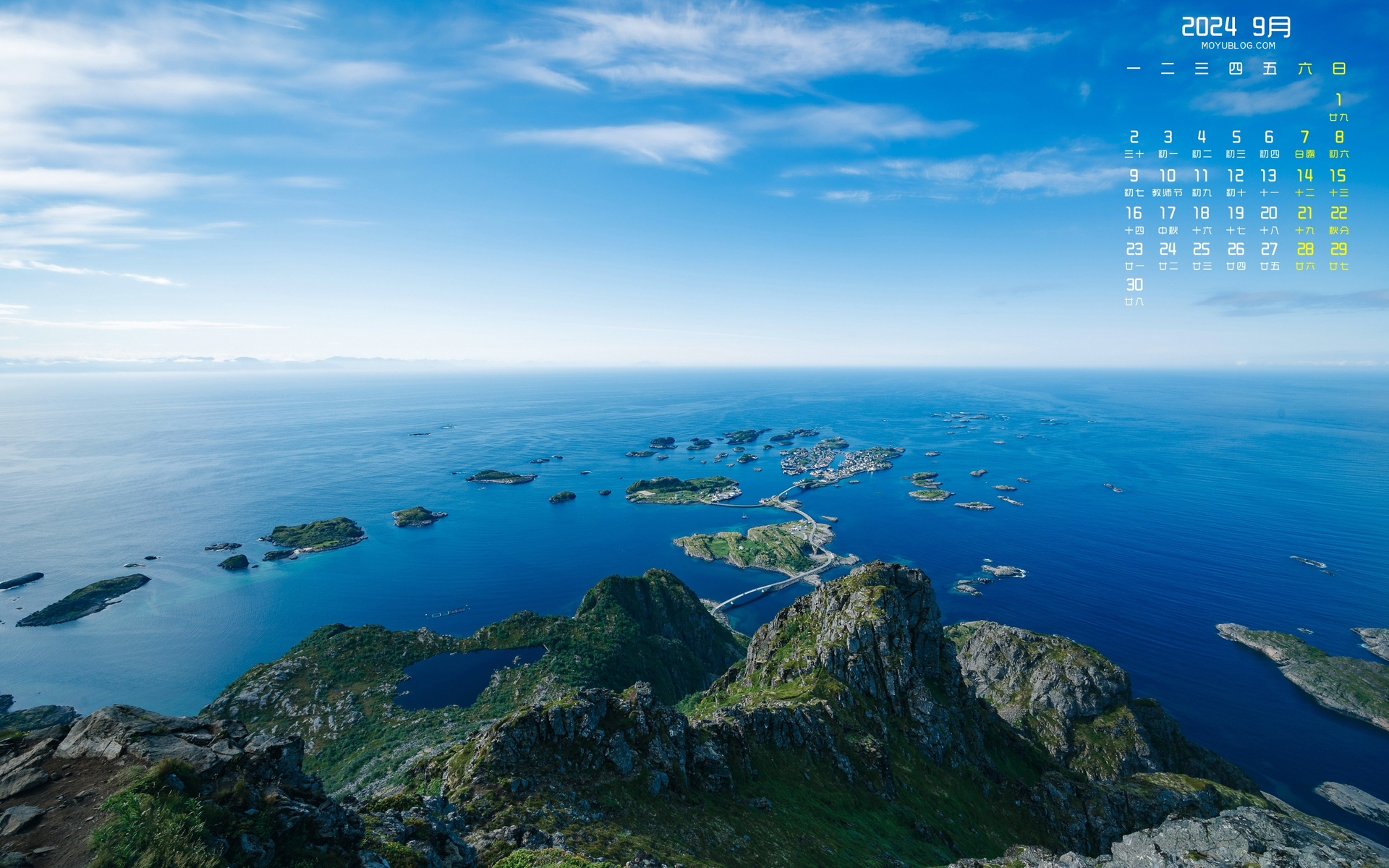 海边小屋风景2024年9月日历桌面壁纸高清