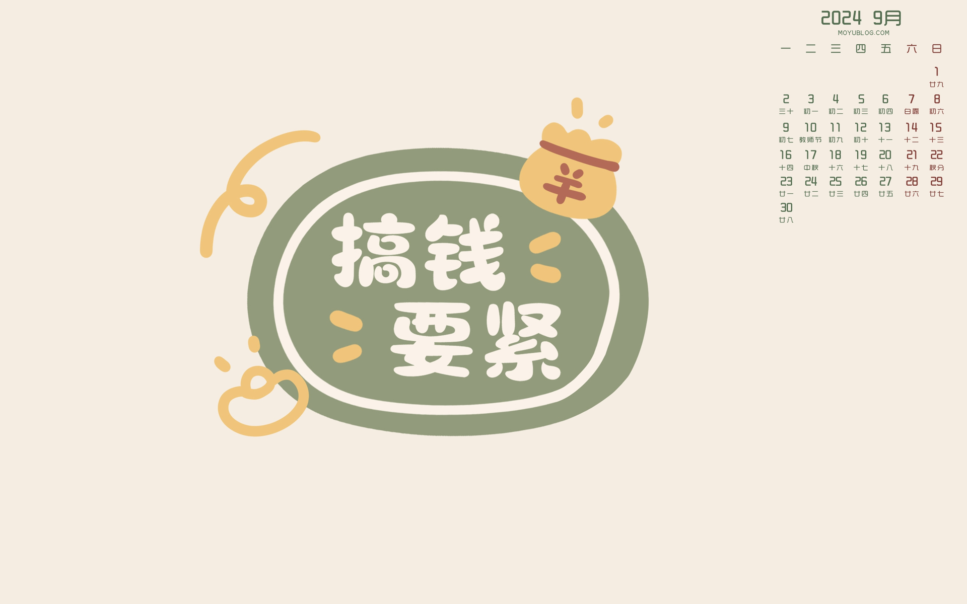 白茅草2024年8月日历桌面壁纸