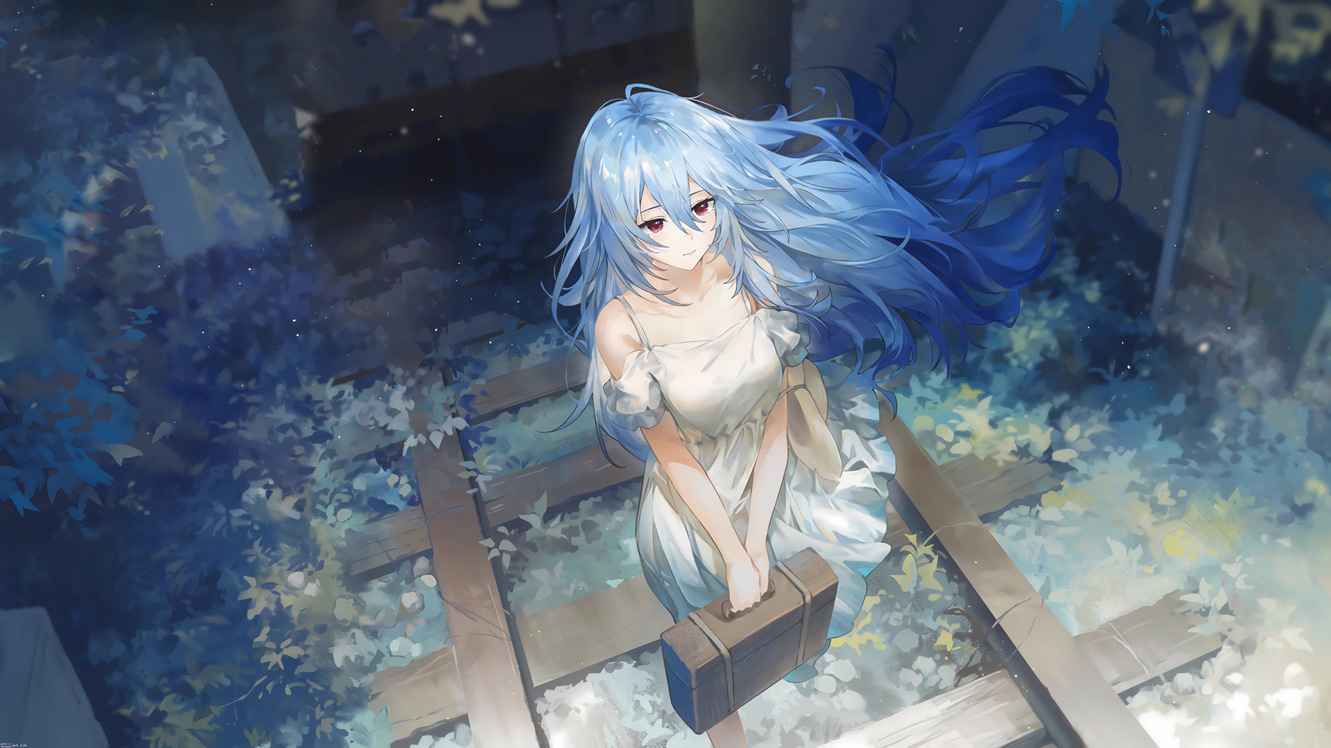EVA新世纪福音战士森林轨道女孩手提箱动漫免费电脑壁纸下载