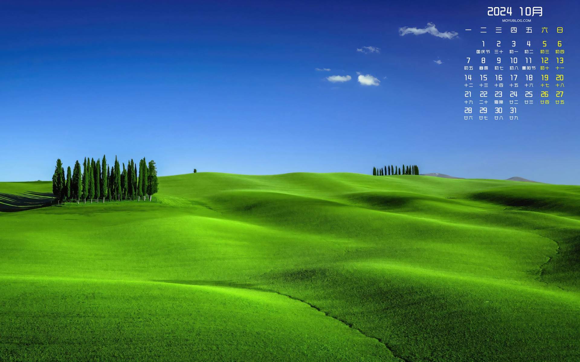 幸运叶2024年10月护眼日历桌面壁纸免费下载