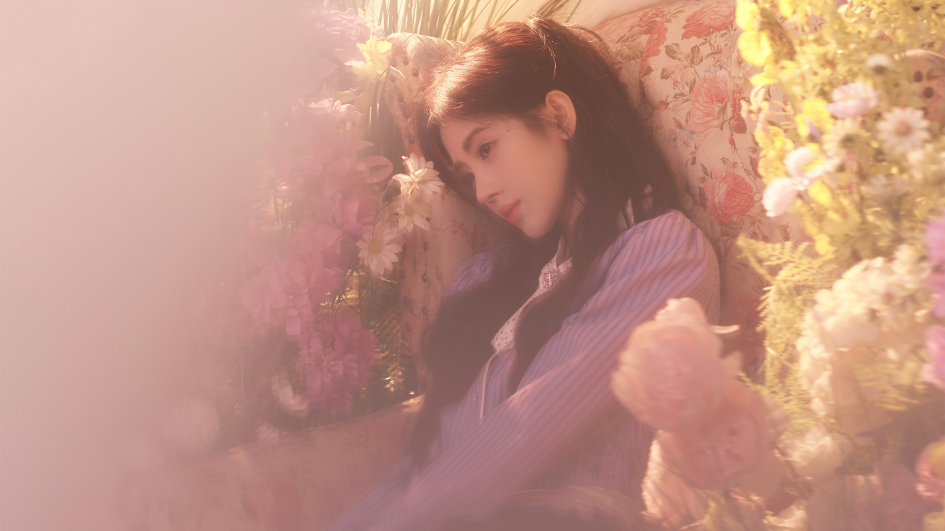唯美 鲜花美女鞠婧祎桌面壁纸