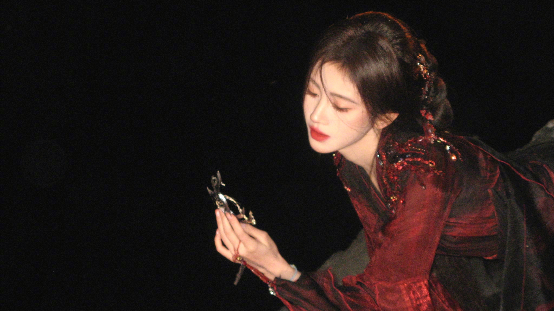 漂亮黑红色古装美女鞠婧祎桌面壁纸