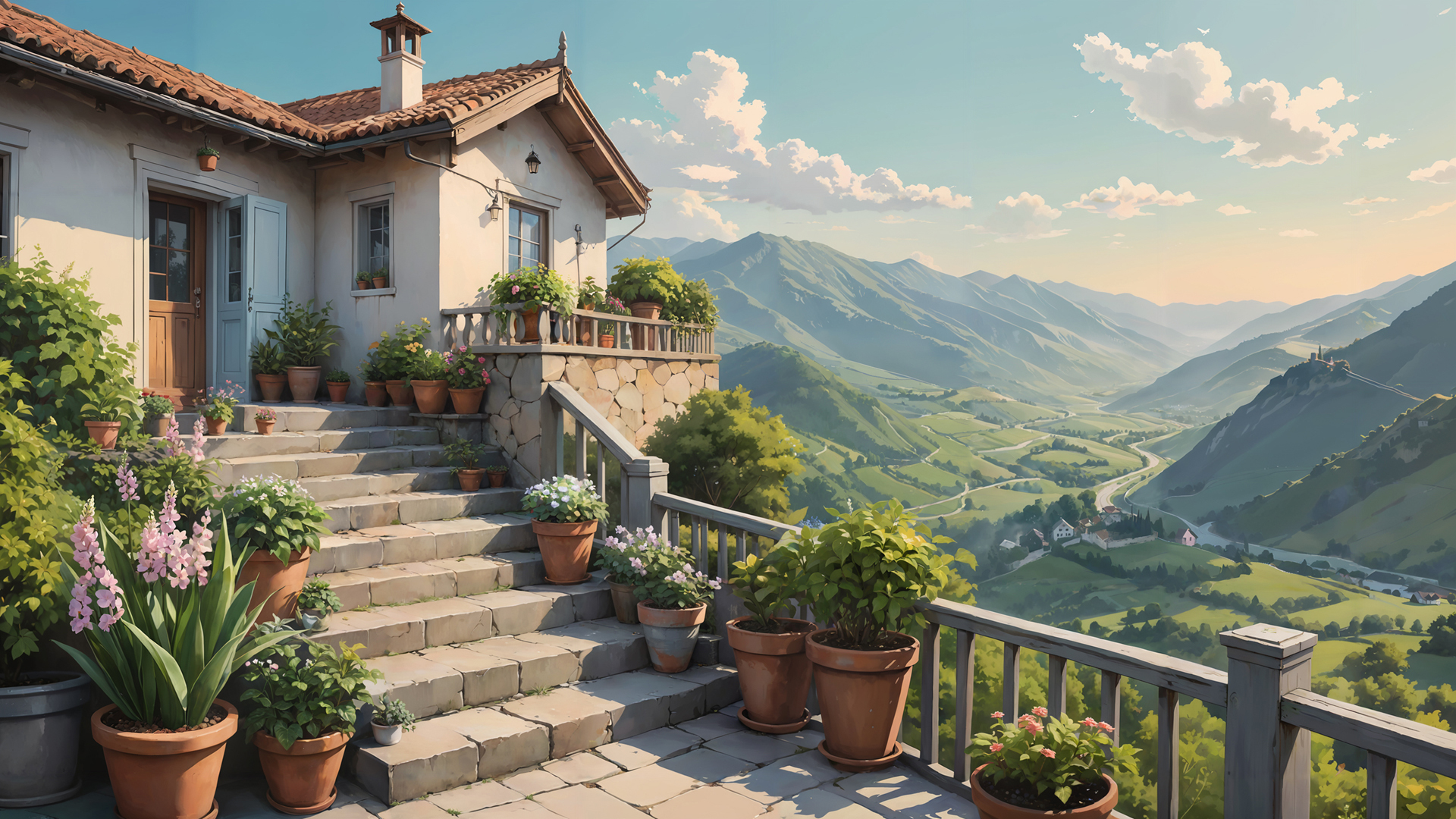 自然,春天,山谷,房子,天空,森林,路,树,绿色草地,美丽的景色,风景桌面壁纸