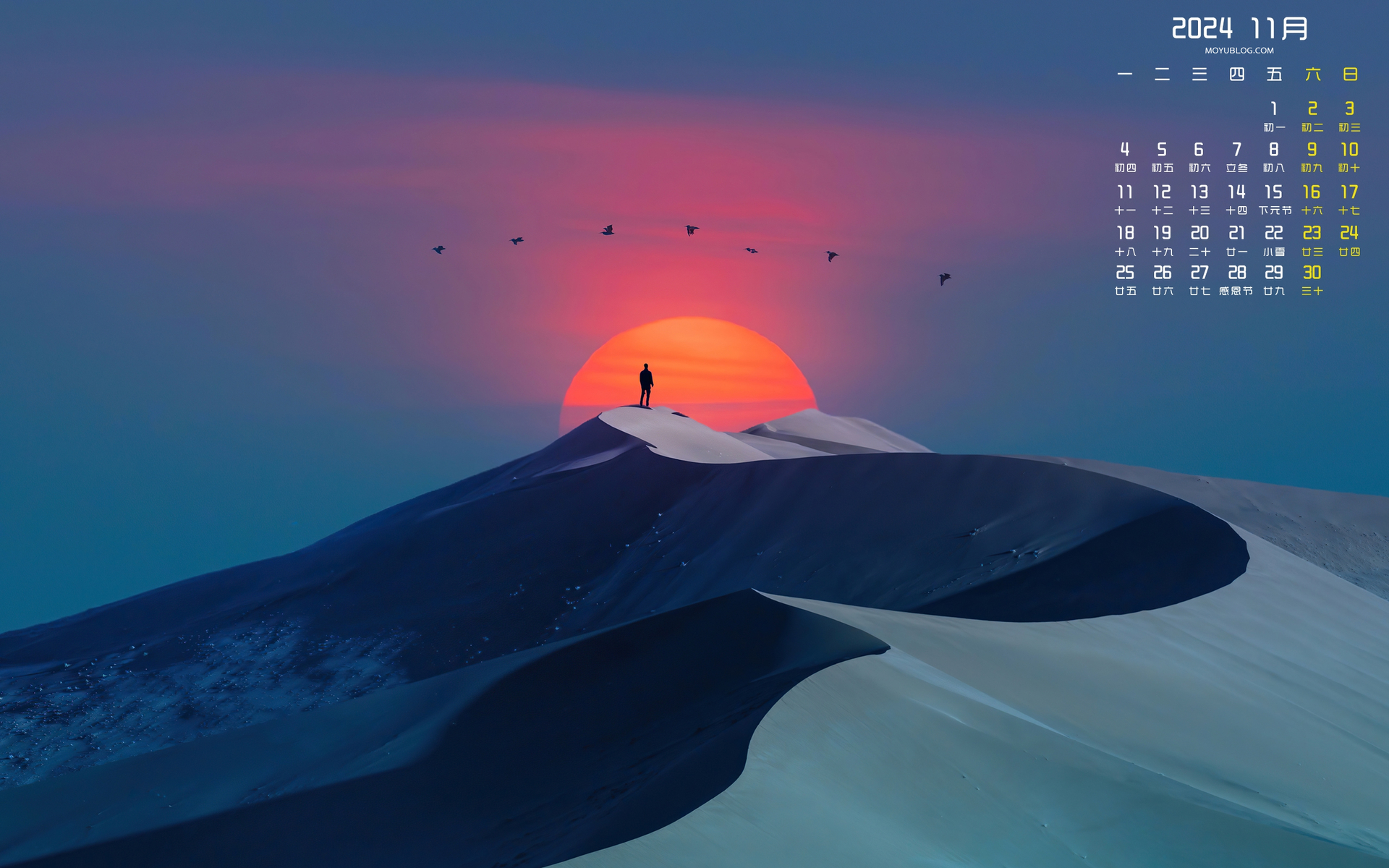 雪后夕阳风景2024年12月桌面日历壁纸高清全屏