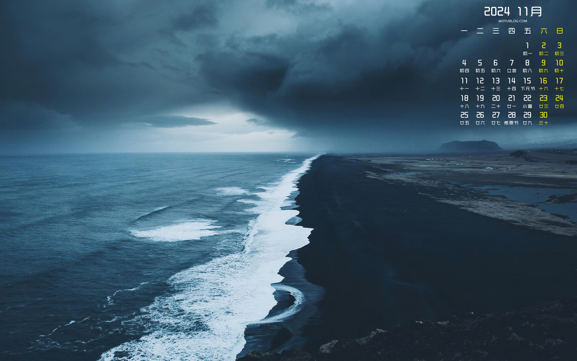 日落金山风景2024年11月桌面日历壁纸高清全屏