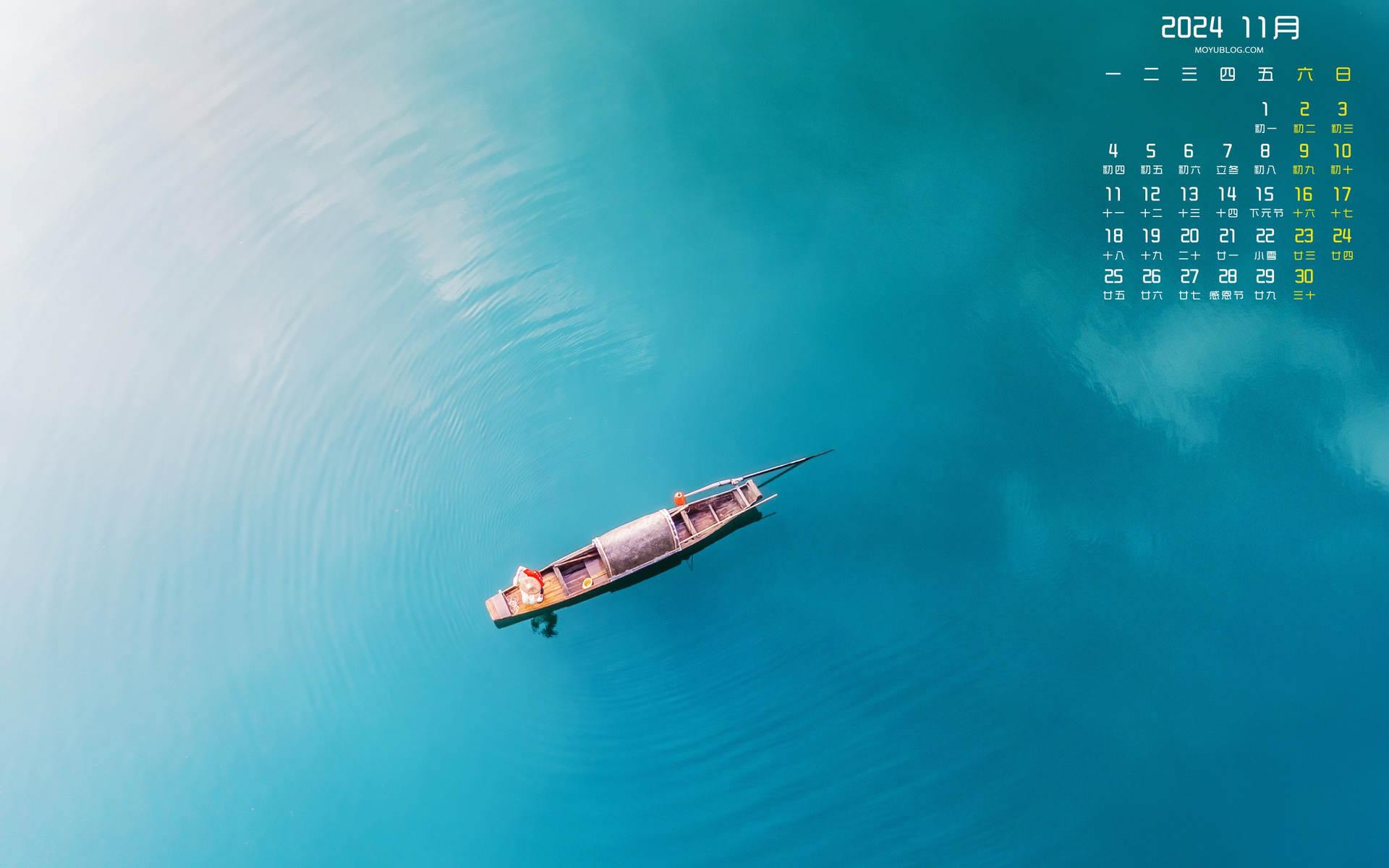 蓝色大海风景2024年11月桌面日历壁纸高清全屏