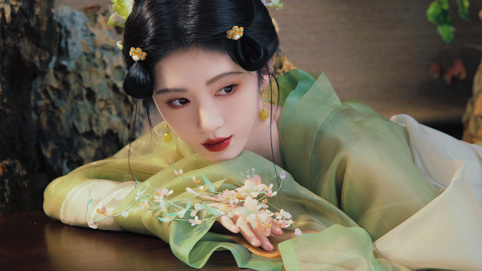 优雅气质美女 双马尾辫 花园 鲜花 漂亮养眼美女壁纸