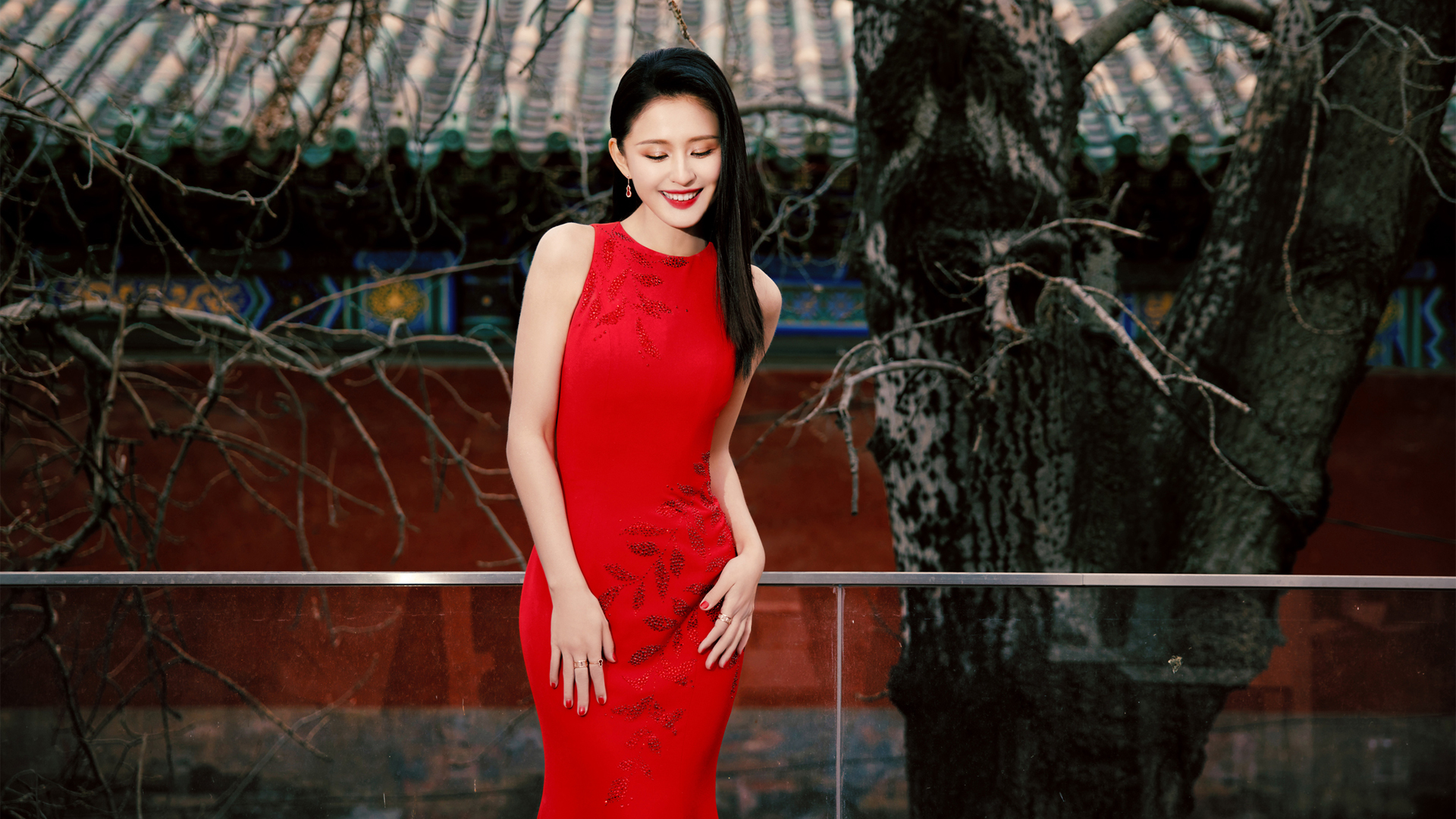 红色裙子热依扎美女高清免费电脑壁纸下载