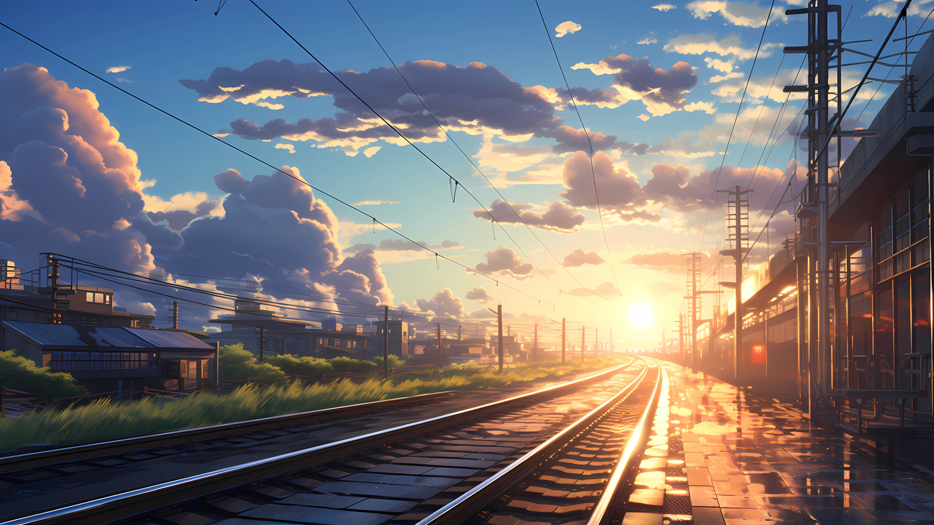 铁路夕阳风景免费电脑壁纸高清下载
