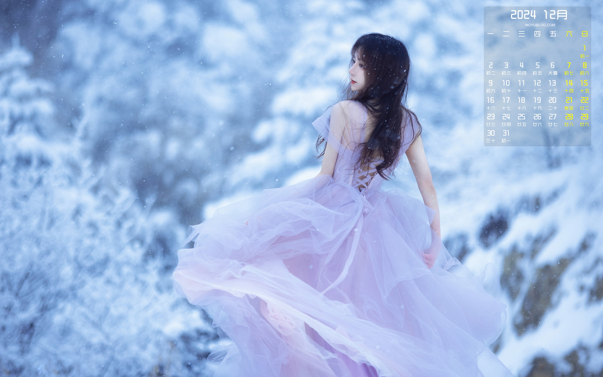 蓝天阳光美女2025年12月日历电脑桌面壁纸