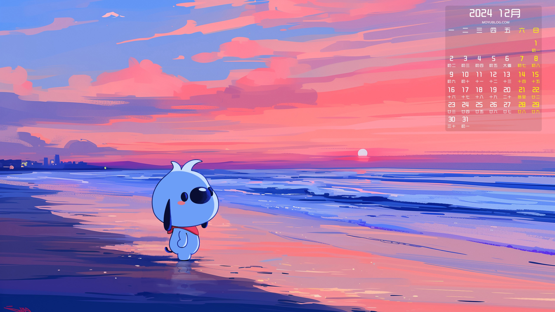 2024年10月夜晚海边风景日历电脑壁纸免费下载