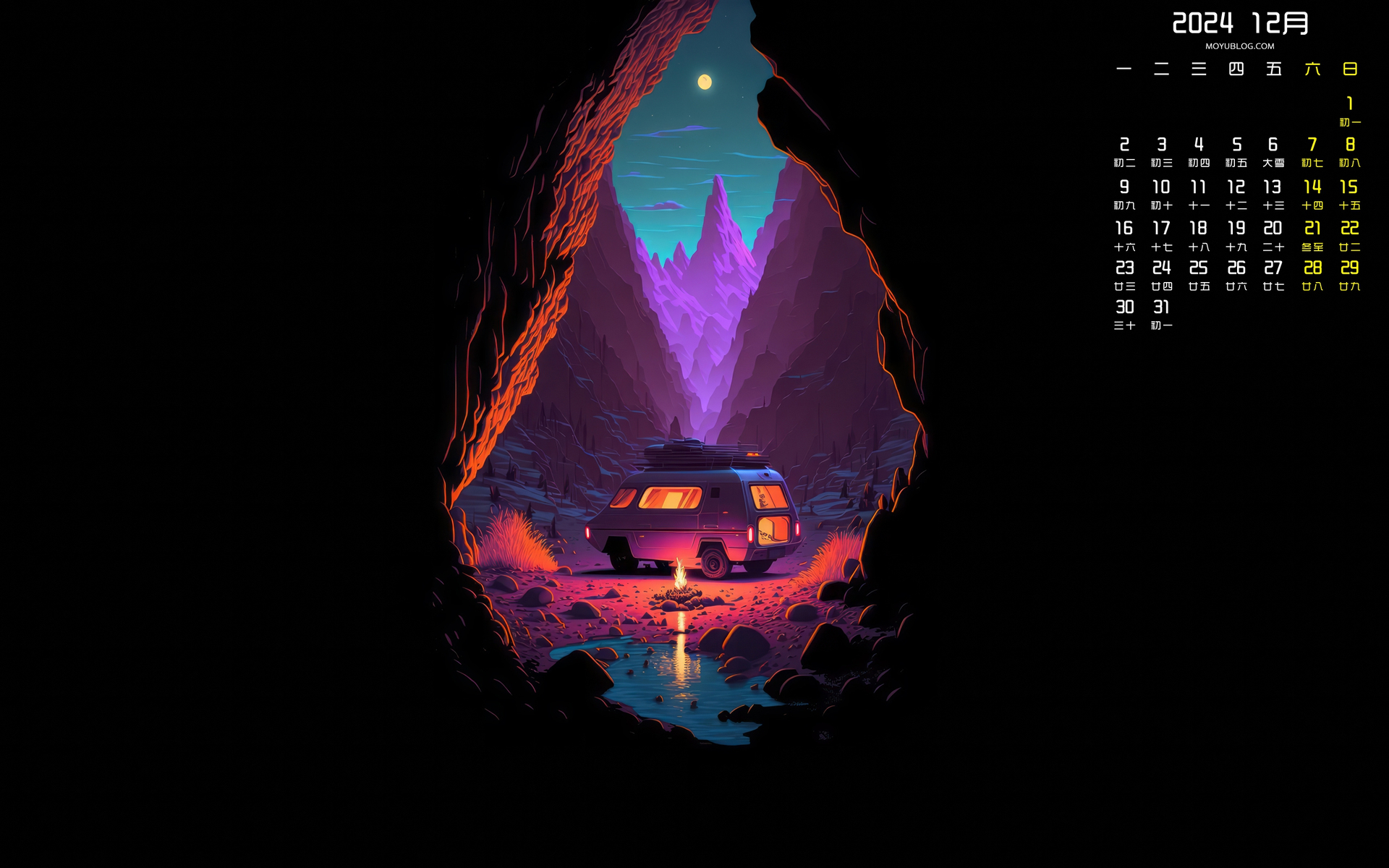 一个人的星空风景2024年11月日历桌面壁纸