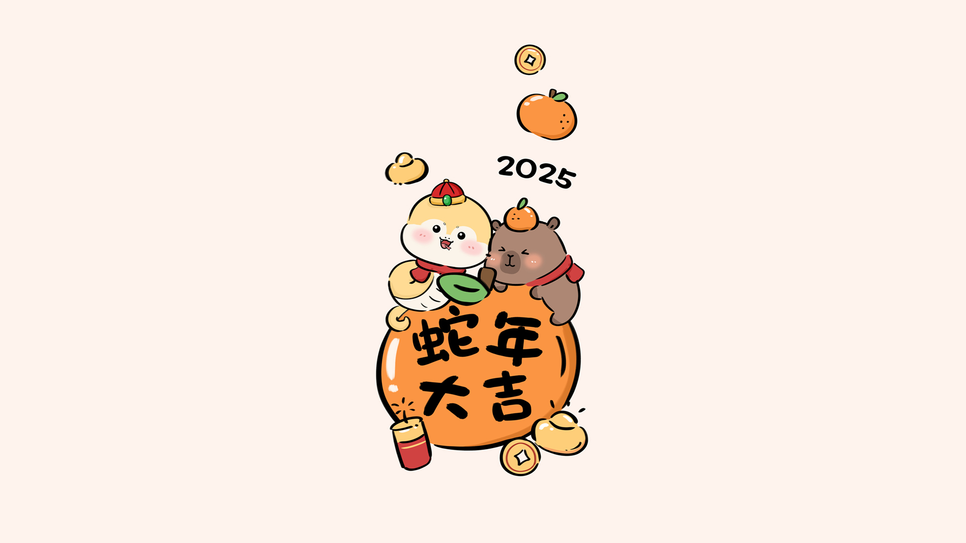 2025蛇年大吉卡通节日免费电脑桌面壁纸下载
