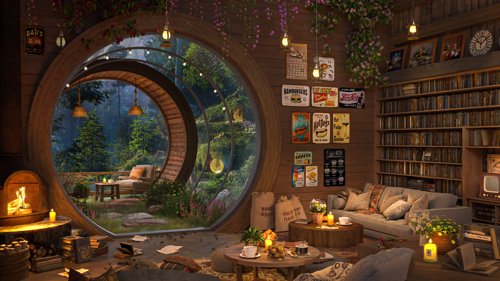 华丽客厅简约情调,沙发灯饰烛光电脑壁纸免费下载