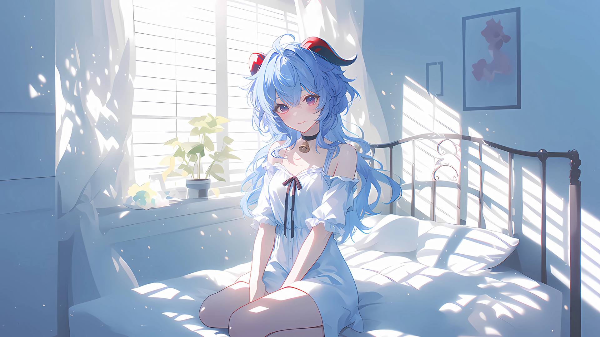 原神甘雨阳光主题房间动漫免费电脑壁纸下载