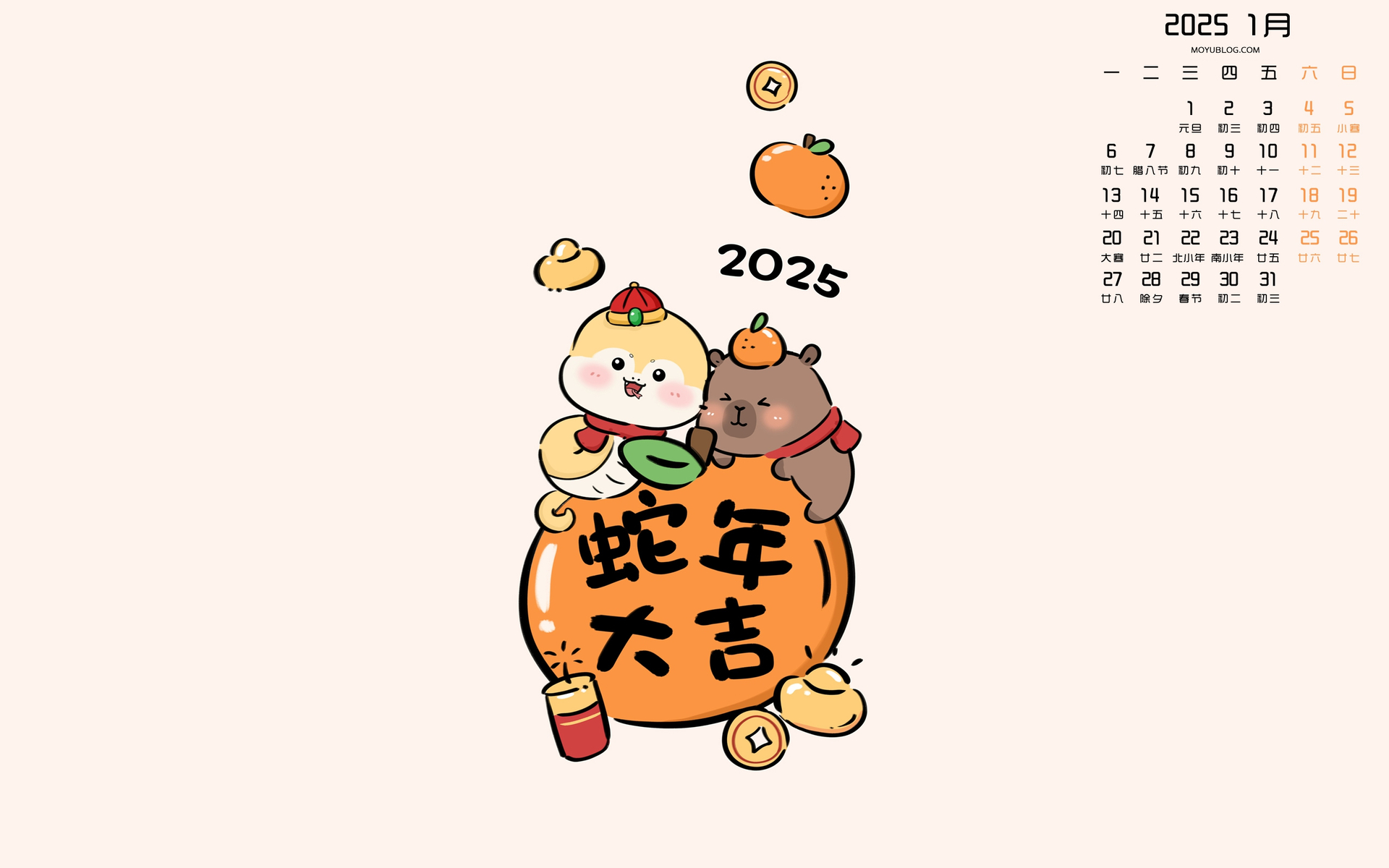 财神到2025年1月日历桌面壁纸高清