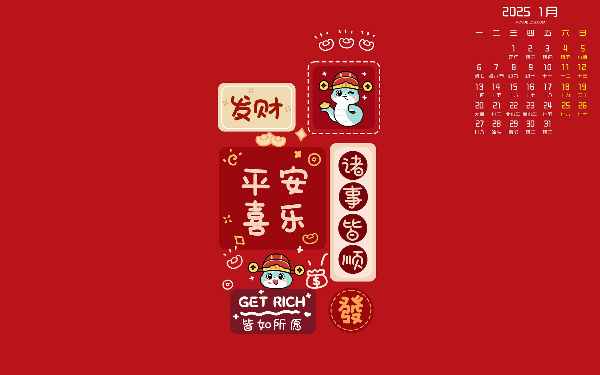 顺 好事发生2025年6月日历电脑桌面壁纸高清全屏