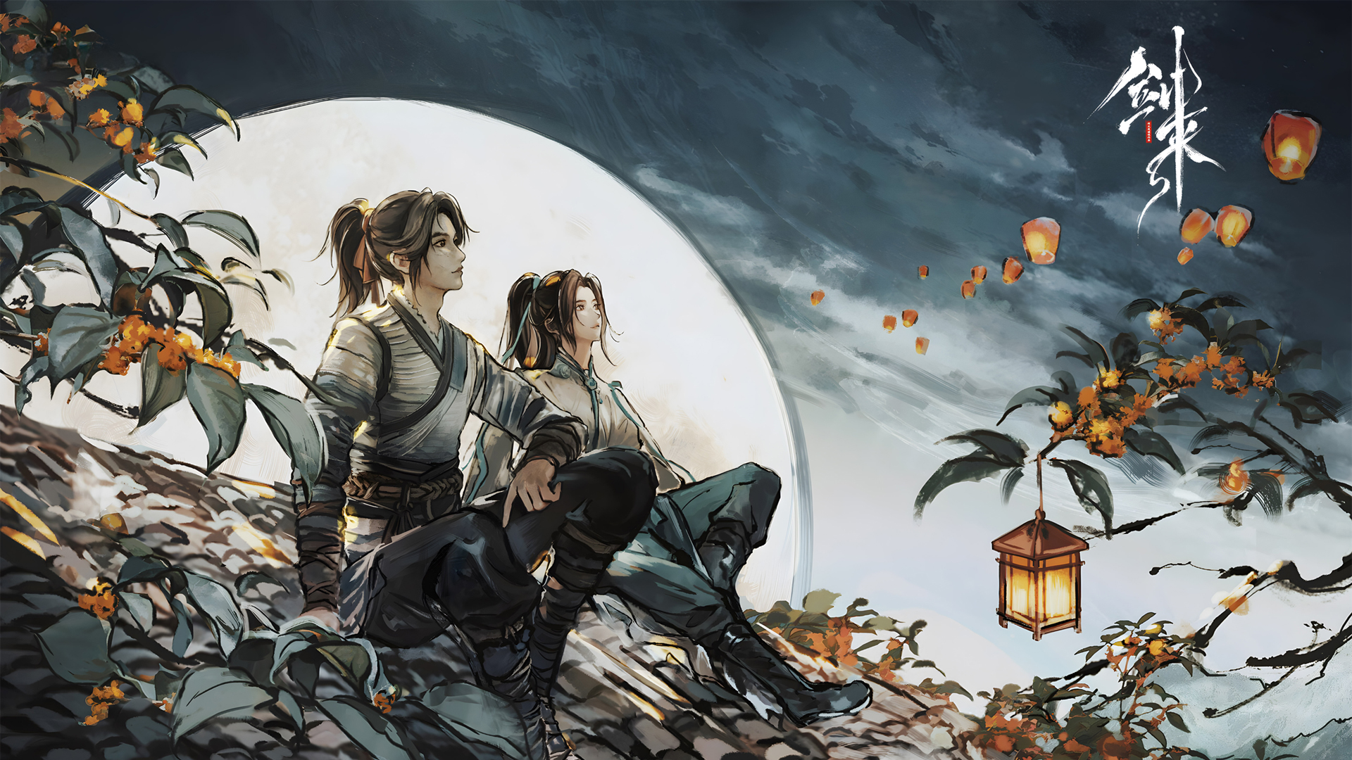 剑来屋顶浪漫情侣动漫电脑壁纸免费下载