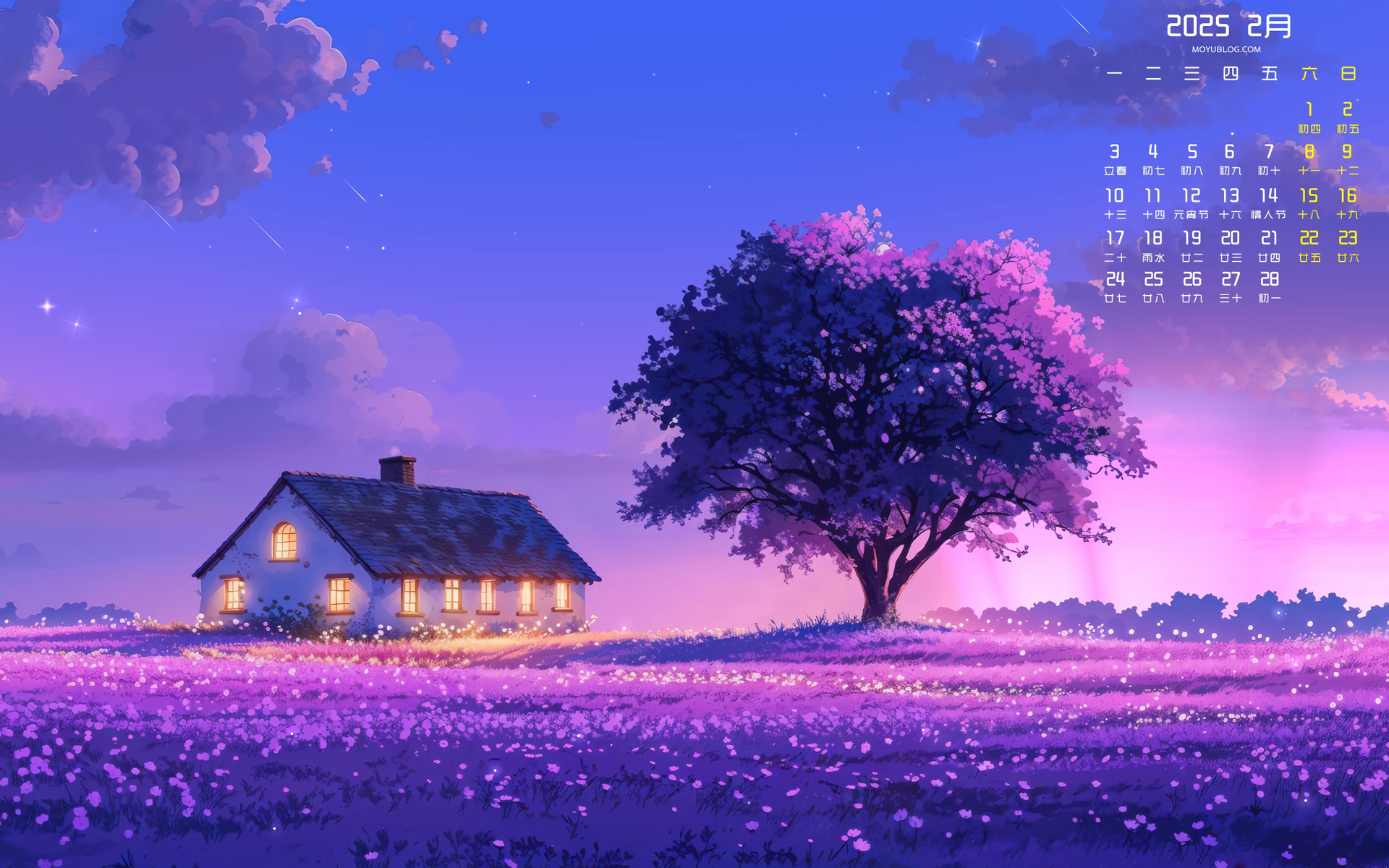 绘画山水夜景2025年7月日历桌面电脑壁纸