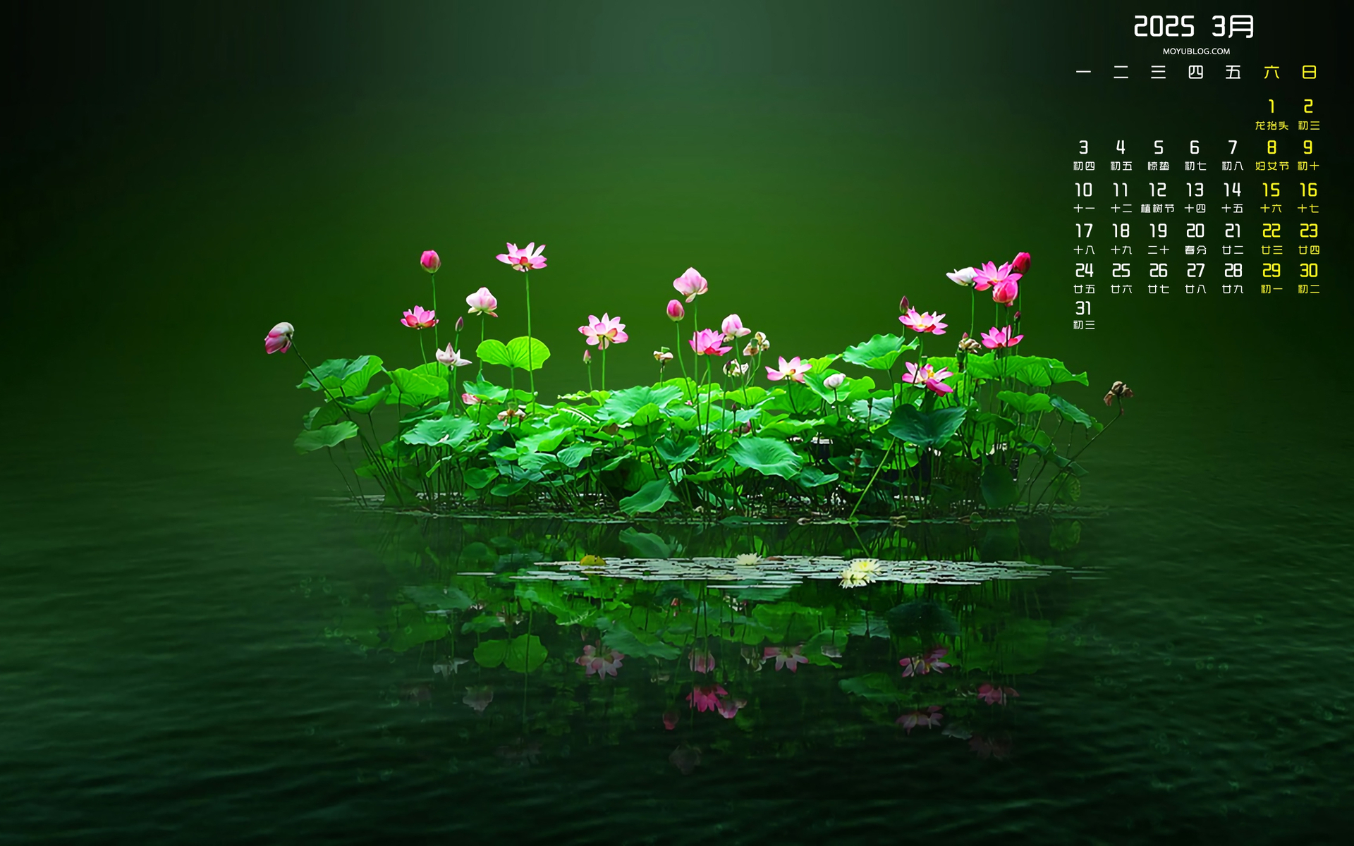 佛系打工人不发脾气只发财2025年3月电脑桌面日历壁纸