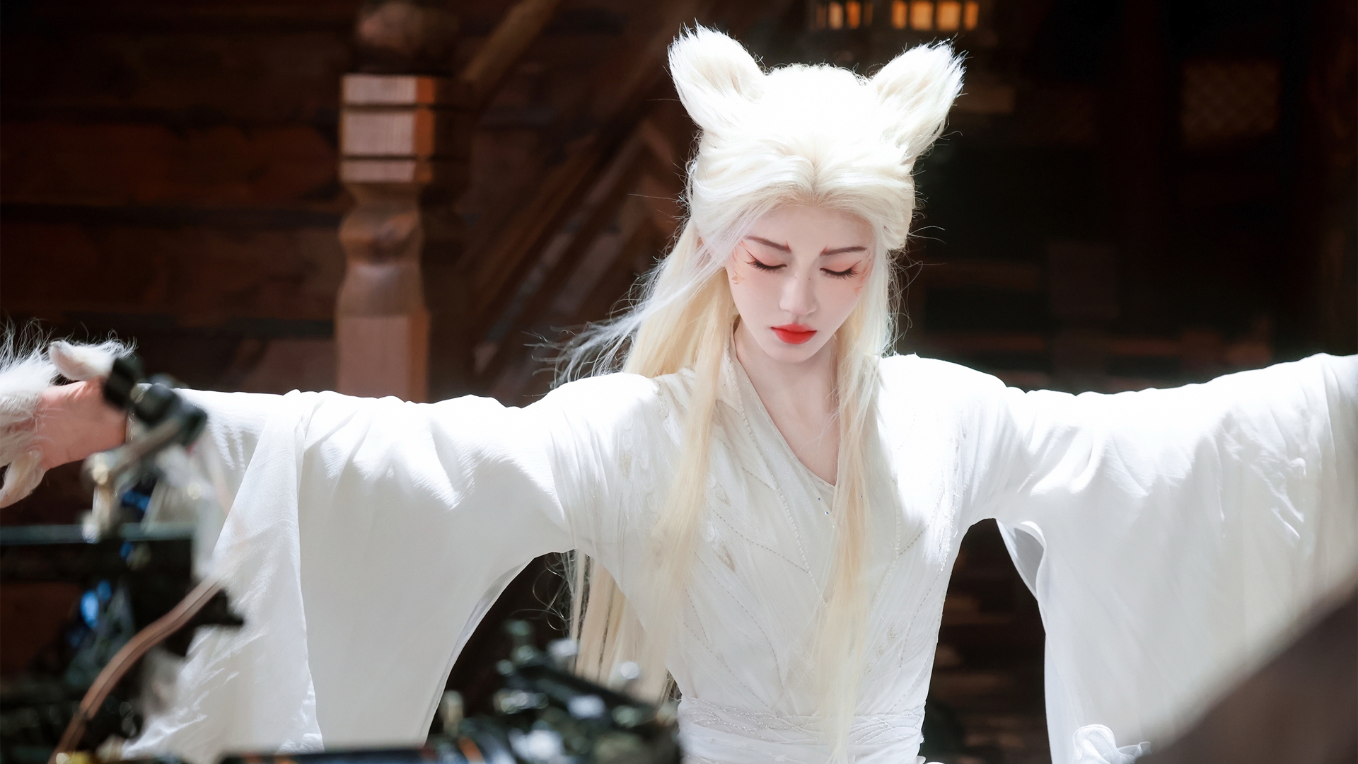鞠婧祎白发狐狸造型美女桌面壁纸
