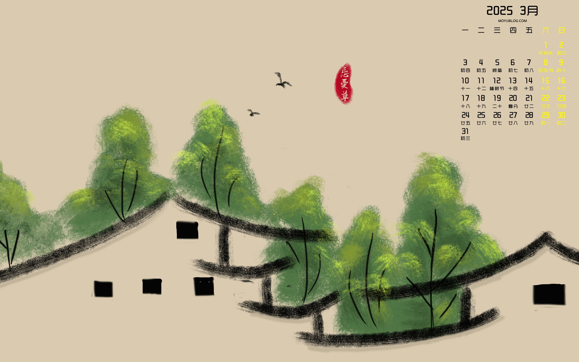 幸运叶2025年3月高清日历桌面壁纸护眼