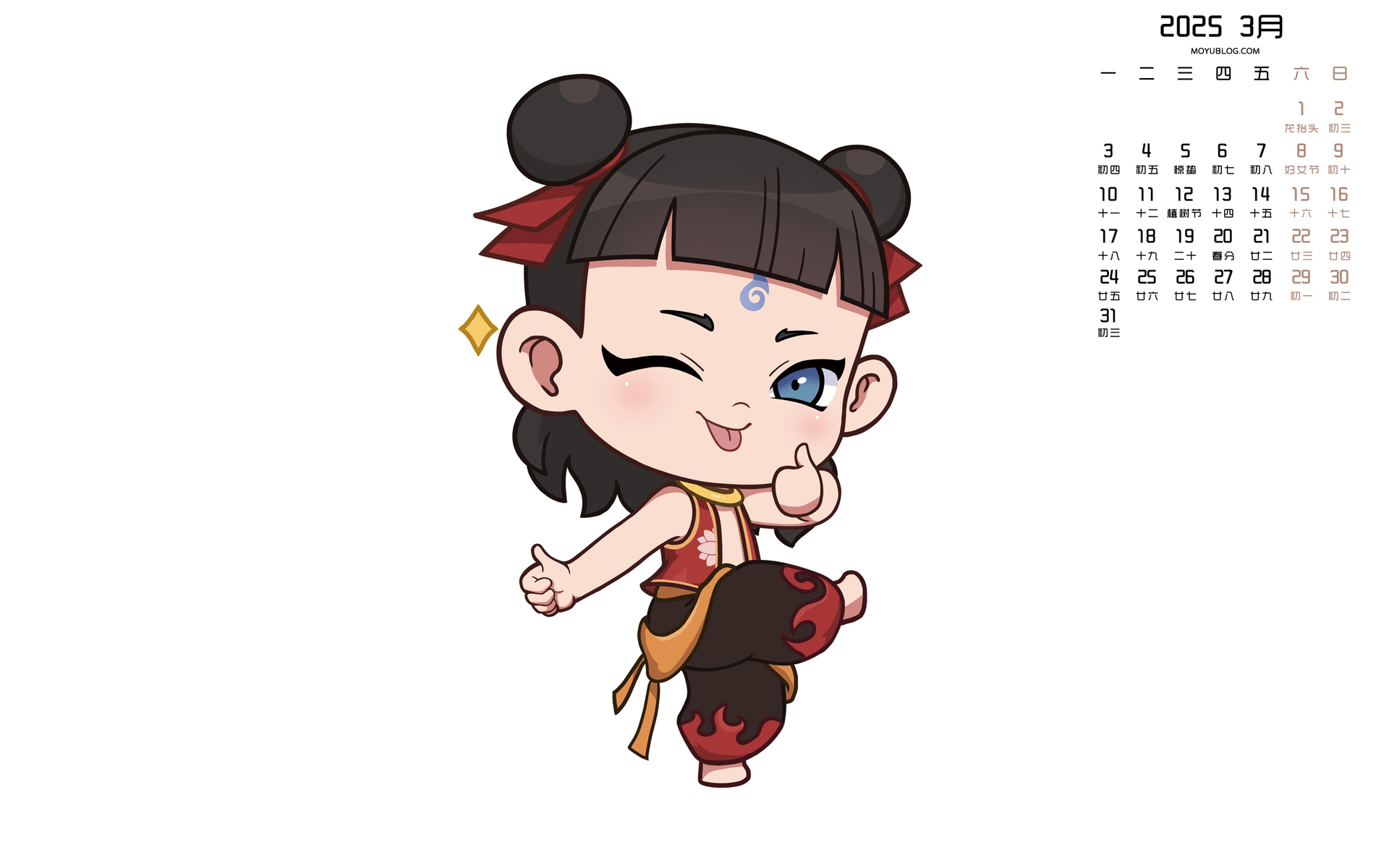 柿柿顺心2025年3月电脑桌面日历壁纸护眼