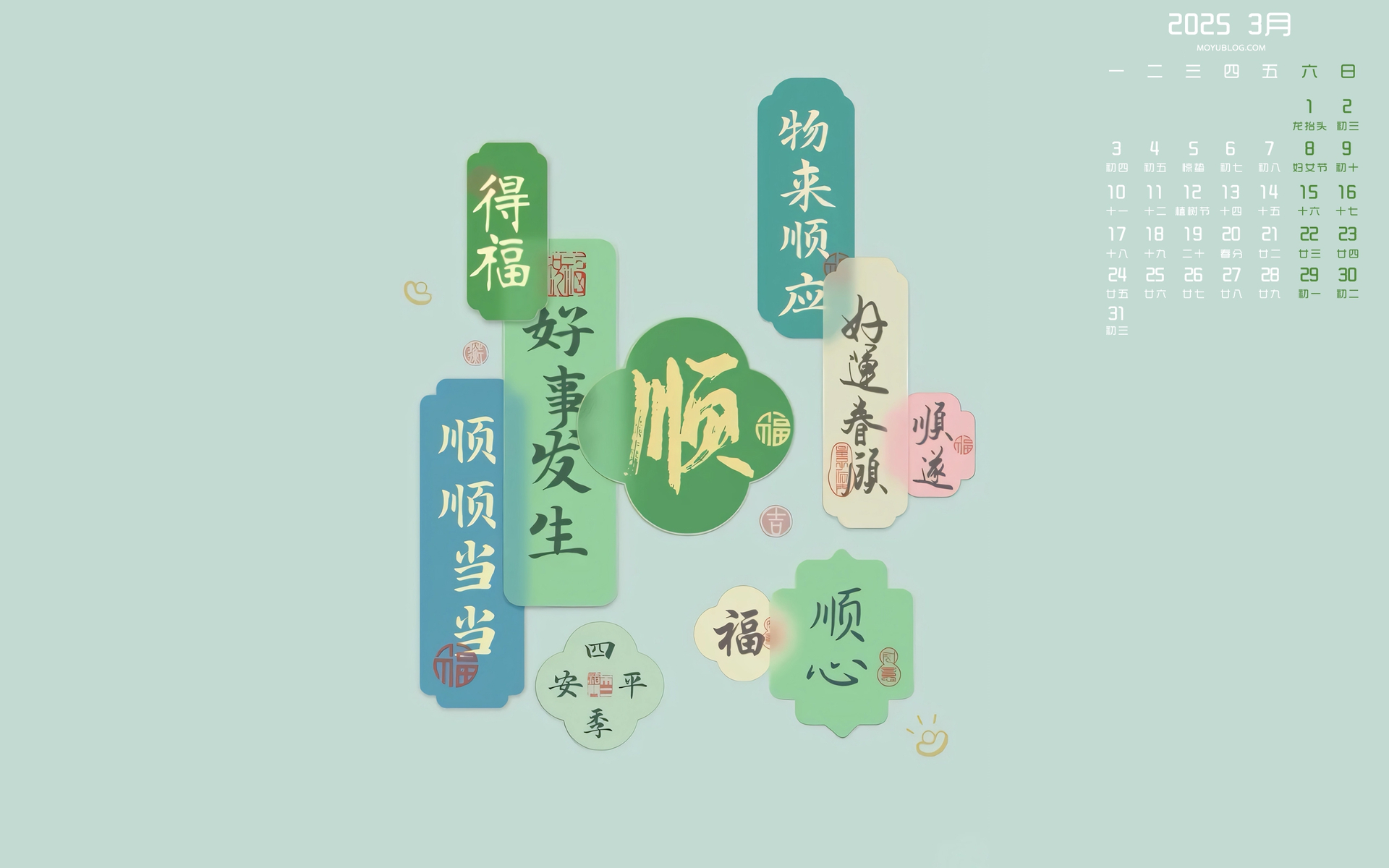 柿柿顺心2025年3月护眼电脑桌面日历壁纸免费下载