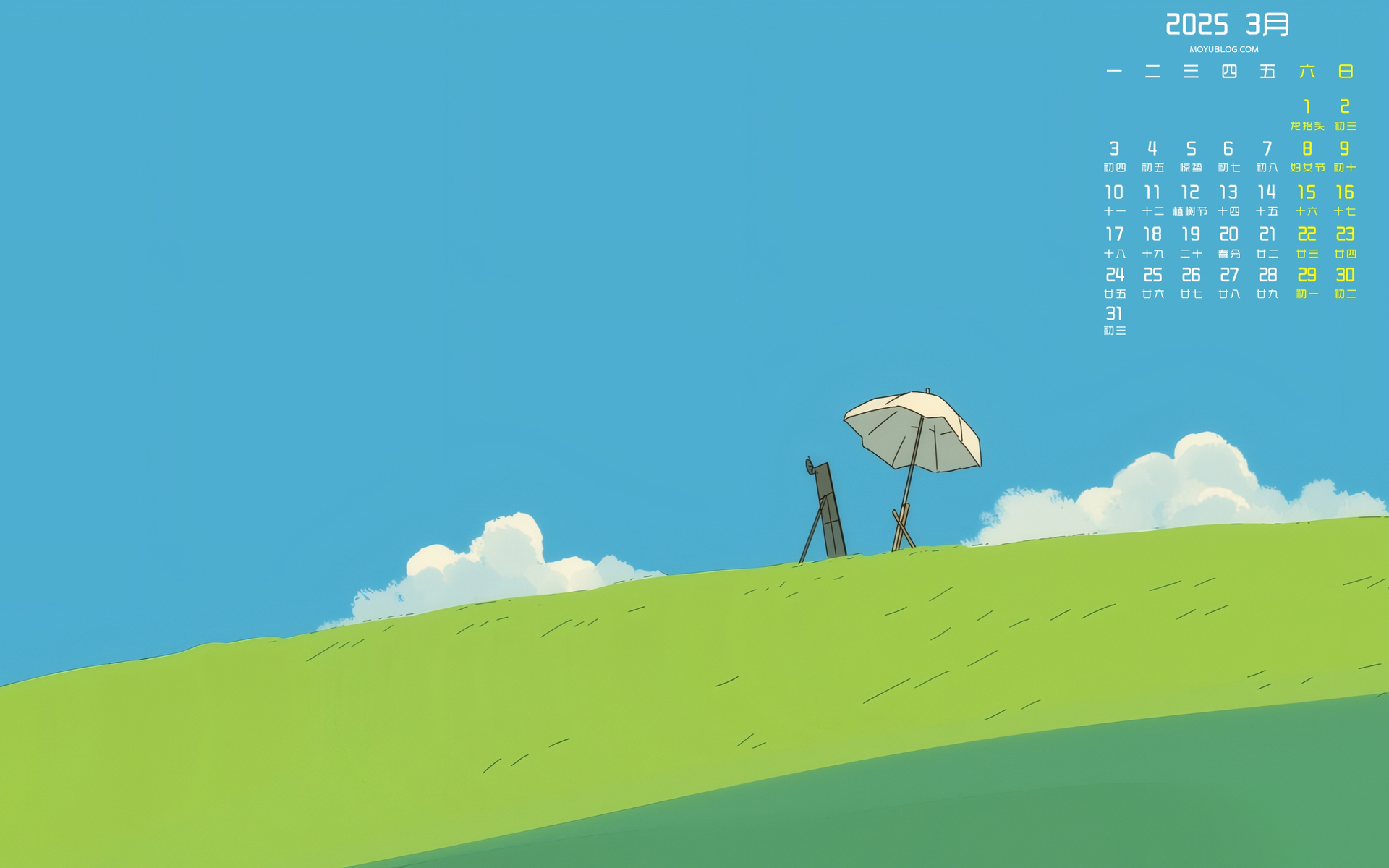 春天草地植物白云风景2025年4月日历桌面壁纸高清全屏