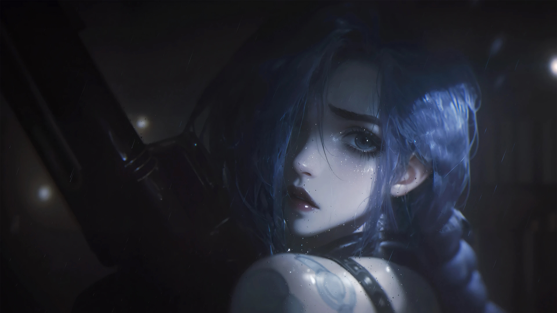 金克斯 长辫子 回头 雨水 动漫桌面壁纸
