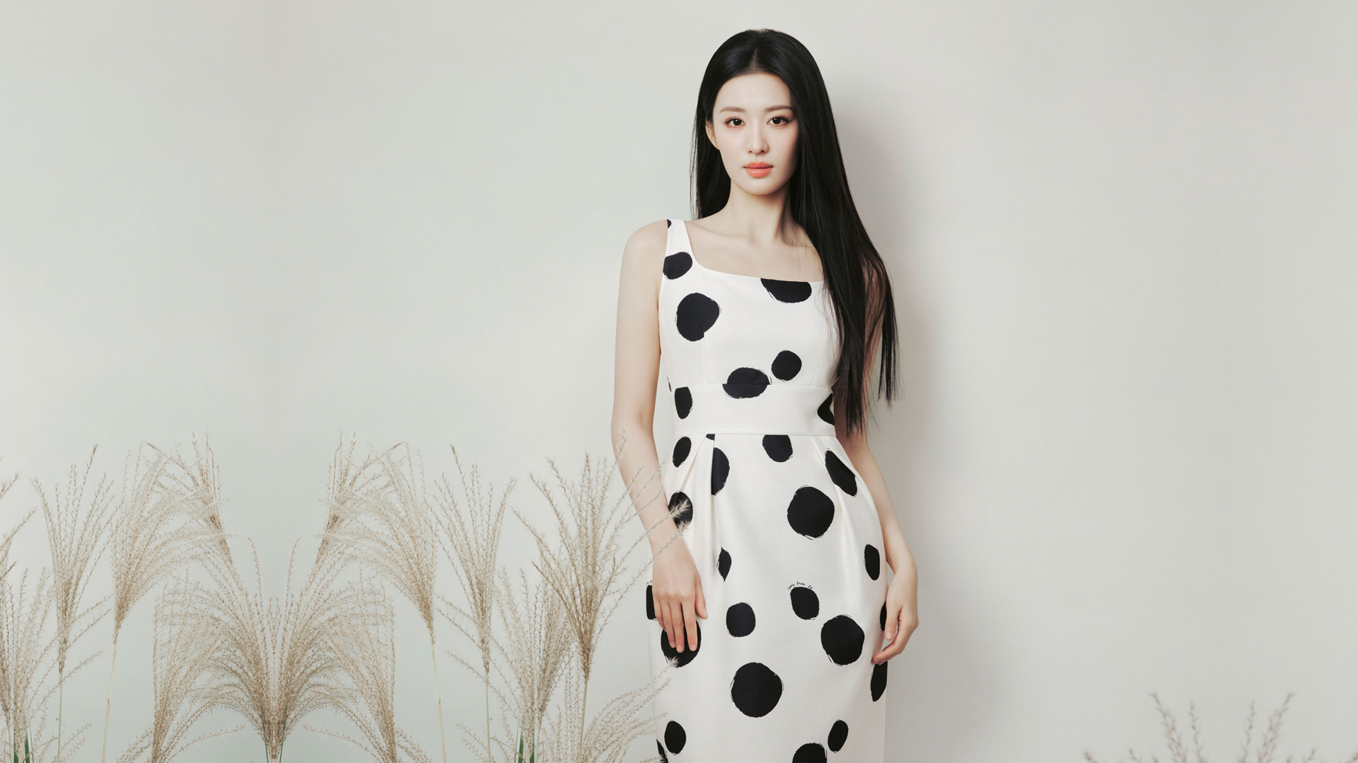 王楚然黑白波点裙美女高清免费电脑壁纸下载