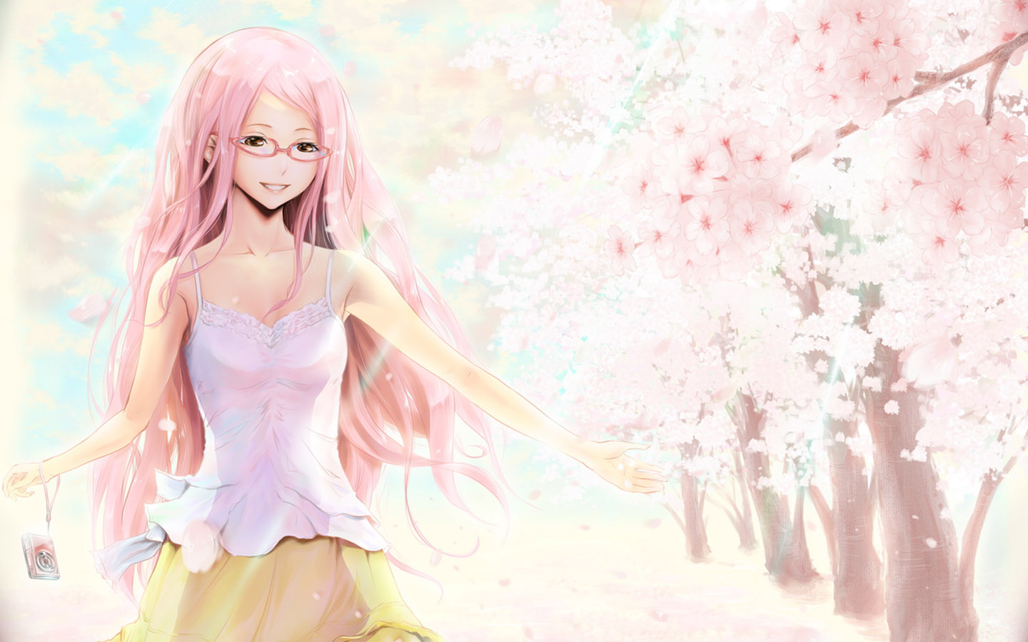 校服女生学生装带伞与花瓣可爱动漫电脑壁纸免费下载
