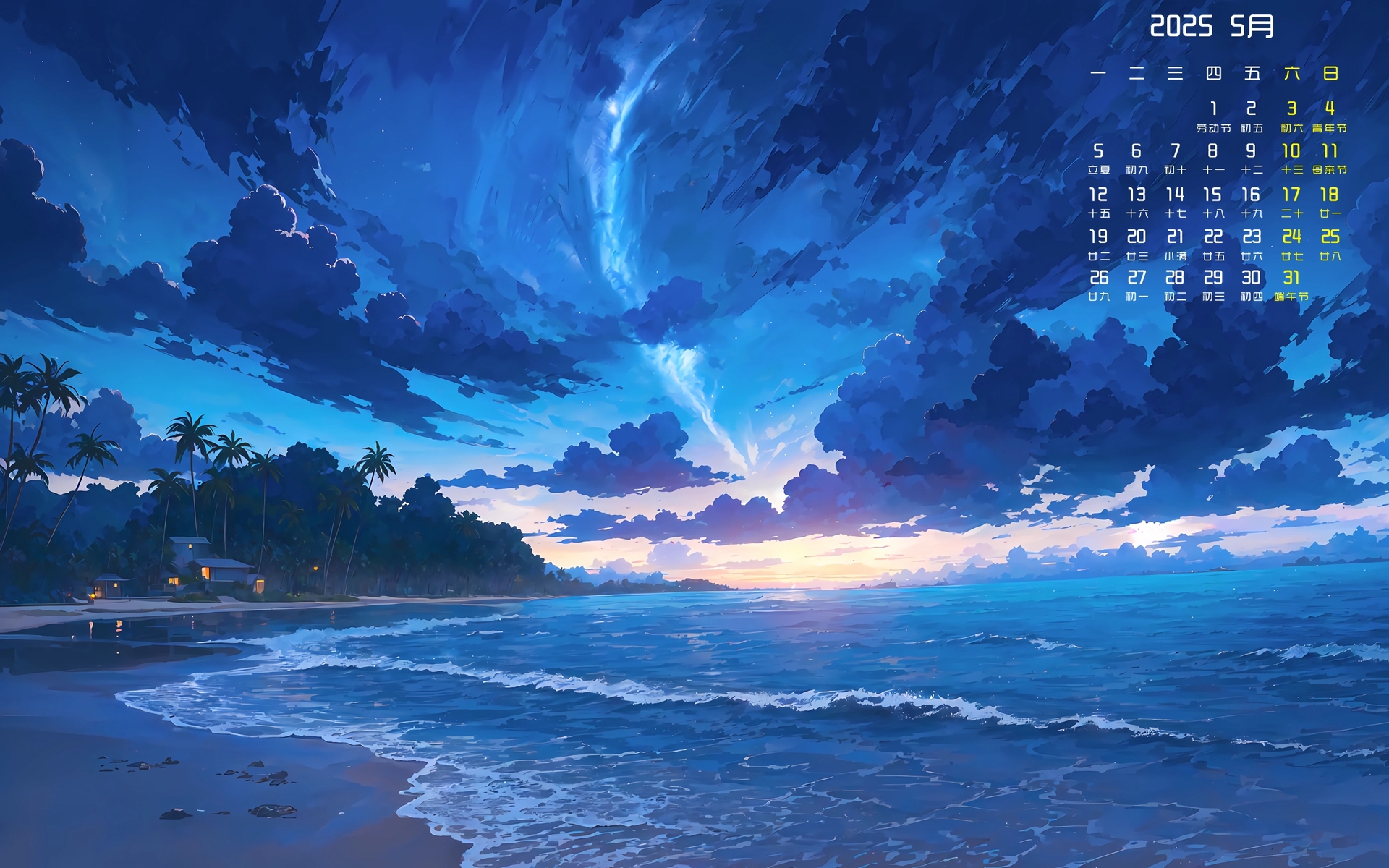 美丽大海风景2025年4月电脑桌面日历壁纸