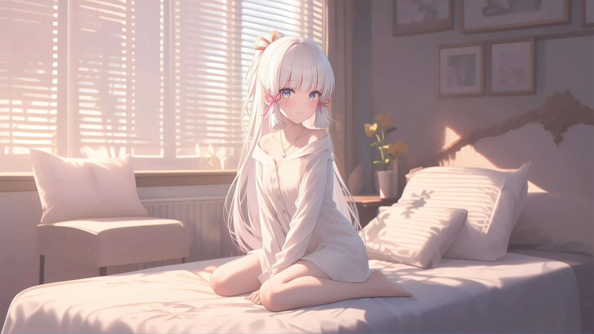 可爱动漫女生晒被单戴帽子壁纸 含内衣元素电脑壁纸免费下载