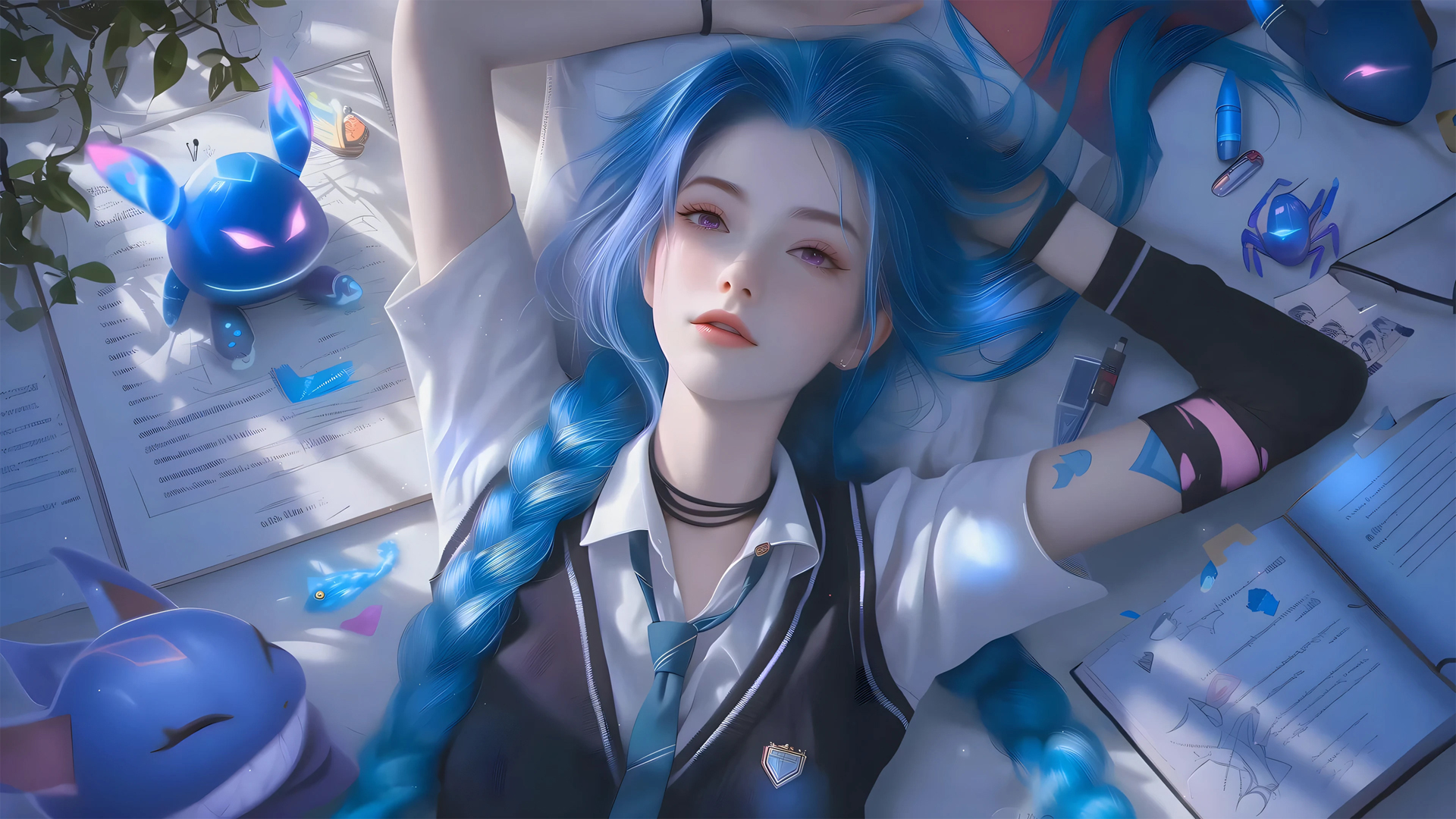 金克丝 蓝色辫子 书本 电脑桌面壁纸