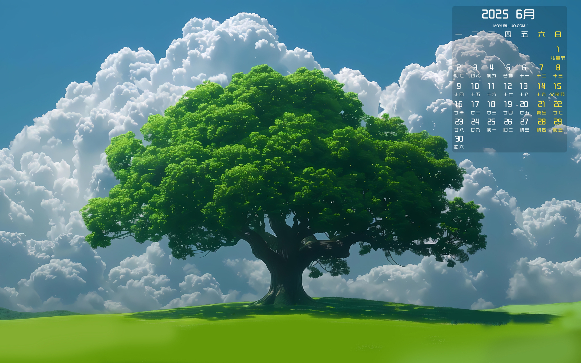 绿色草原一棵树风景2025年11月电脑桌面日历壁纸