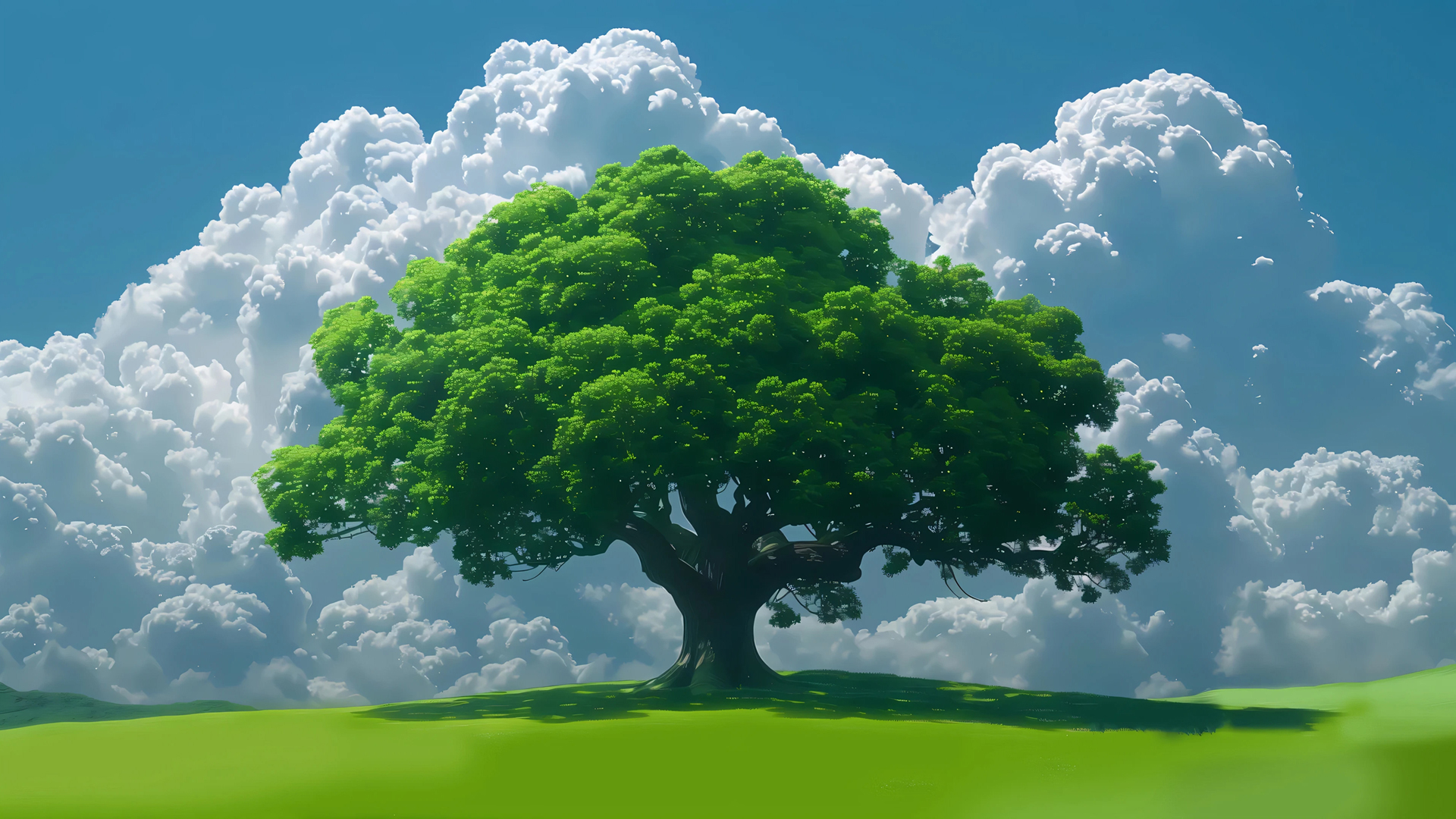 一棵树绿草地蓝天白云风景免费电脑壁纸下载