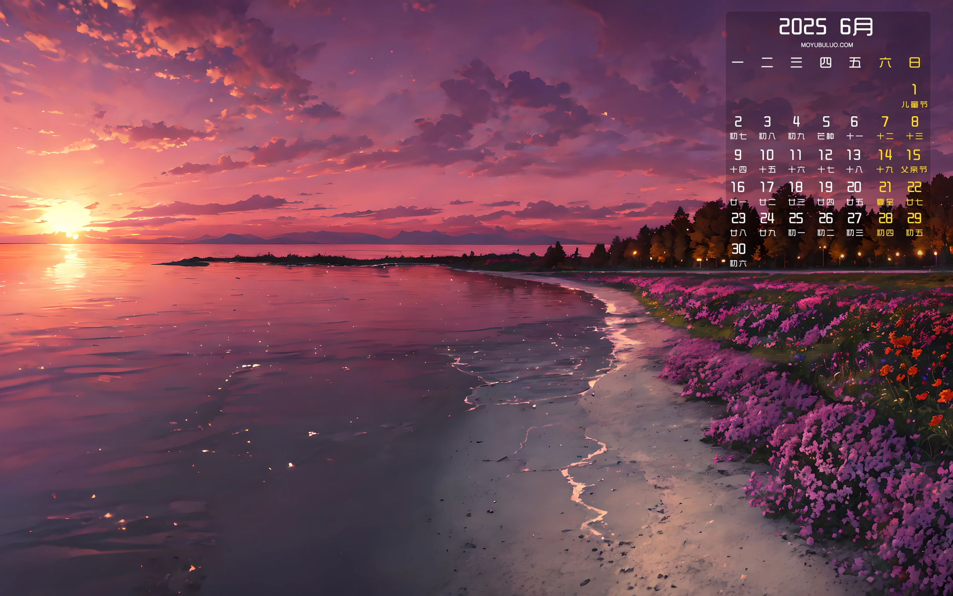 小岛房子风景2025年7月电脑桌面日历壁纸