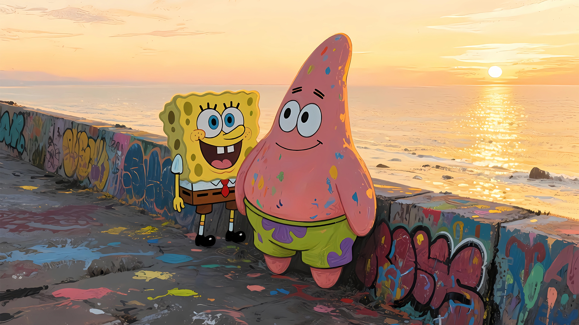 海绵宝宝海边涂鸦动漫免费电脑壁纸下载