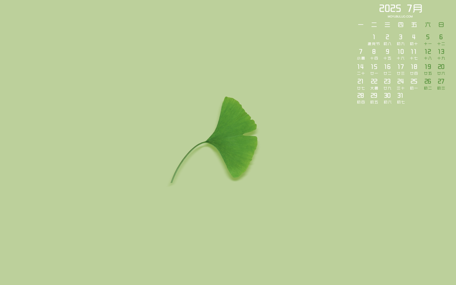 护眼绿叶2025年6月日历电脑壁纸免费下载