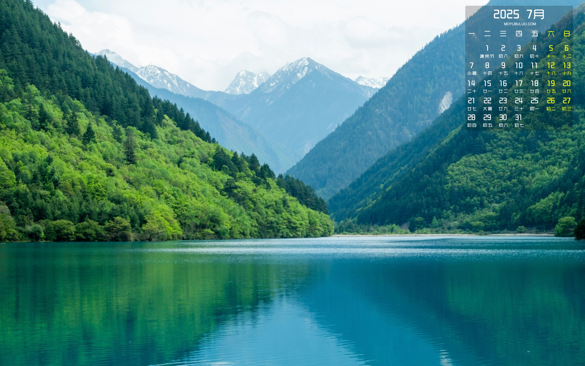 2025年7月海边树林草地风景日历电脑壁纸免费下载