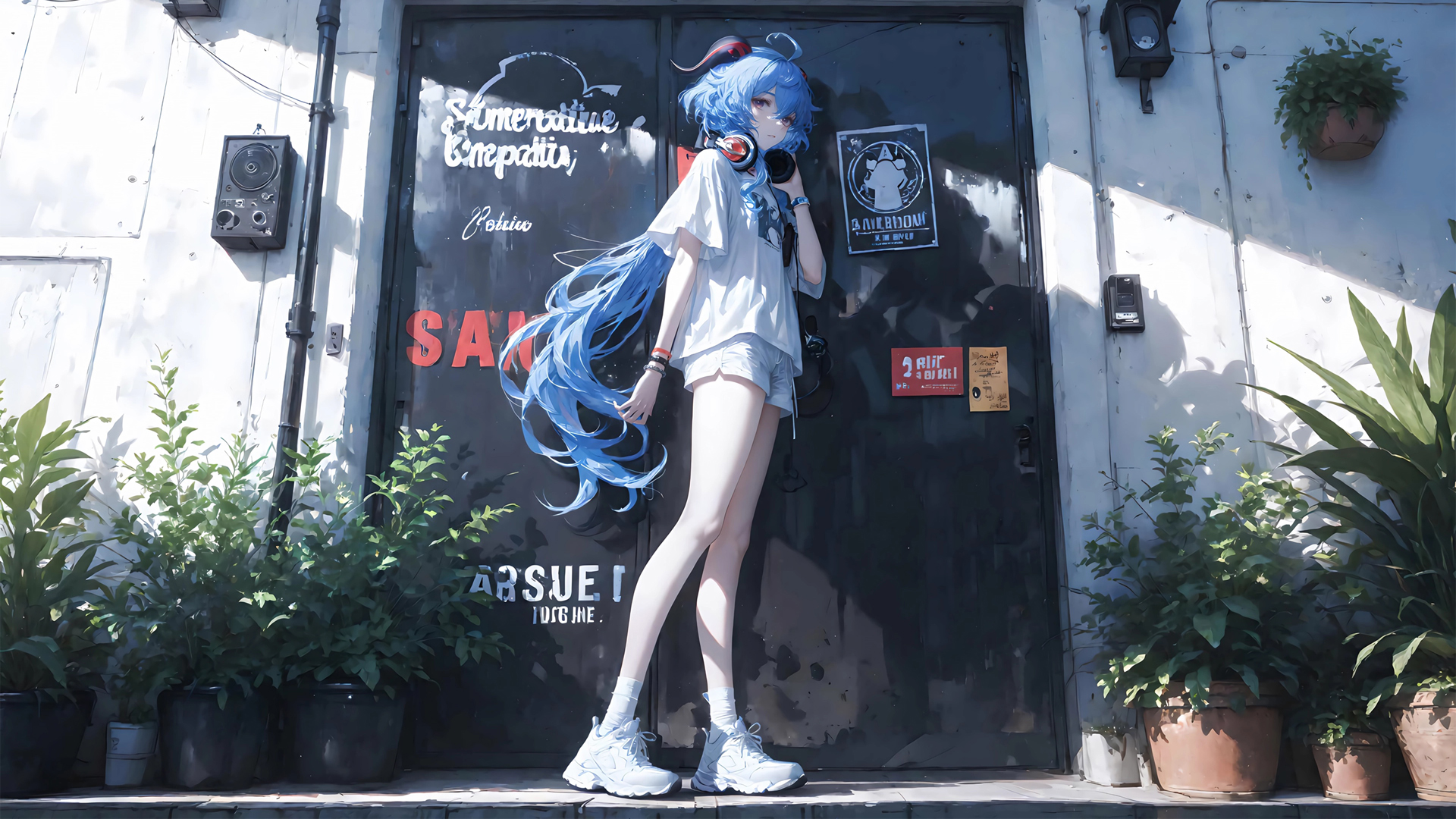 比基尼短裤裙子二次元女生星空动漫电脑壁纸免费下载