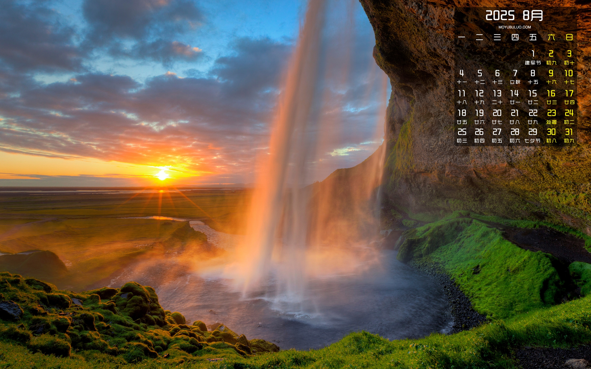 海上观音2025年8月份日历壁纸